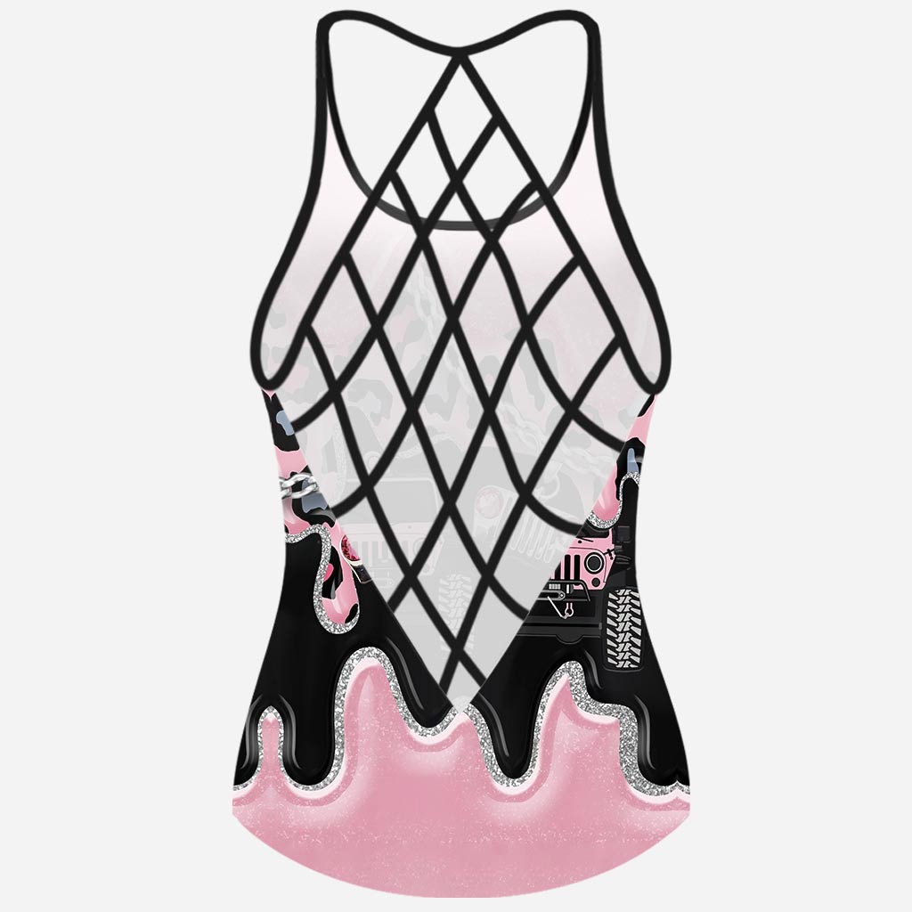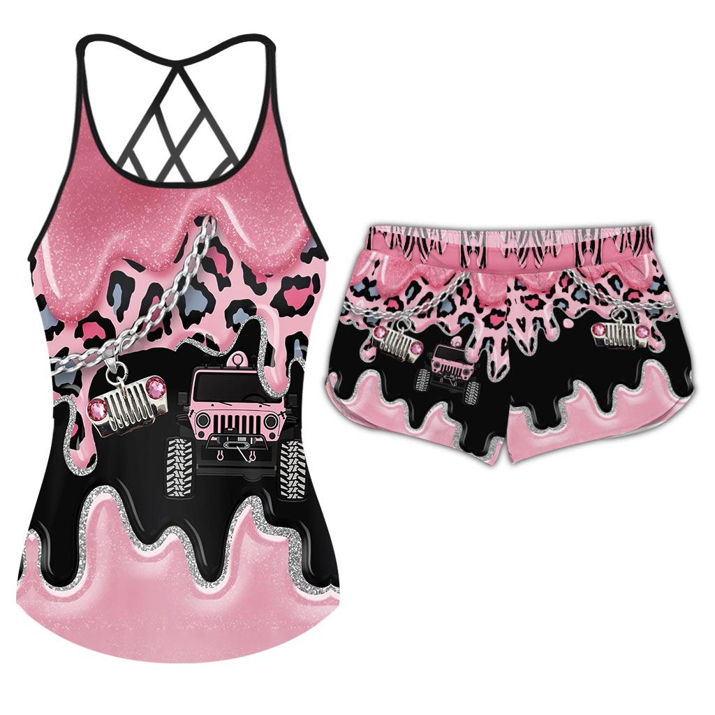 Black Pink Jp Girl Car Cross - Tank Top and Women Shorts