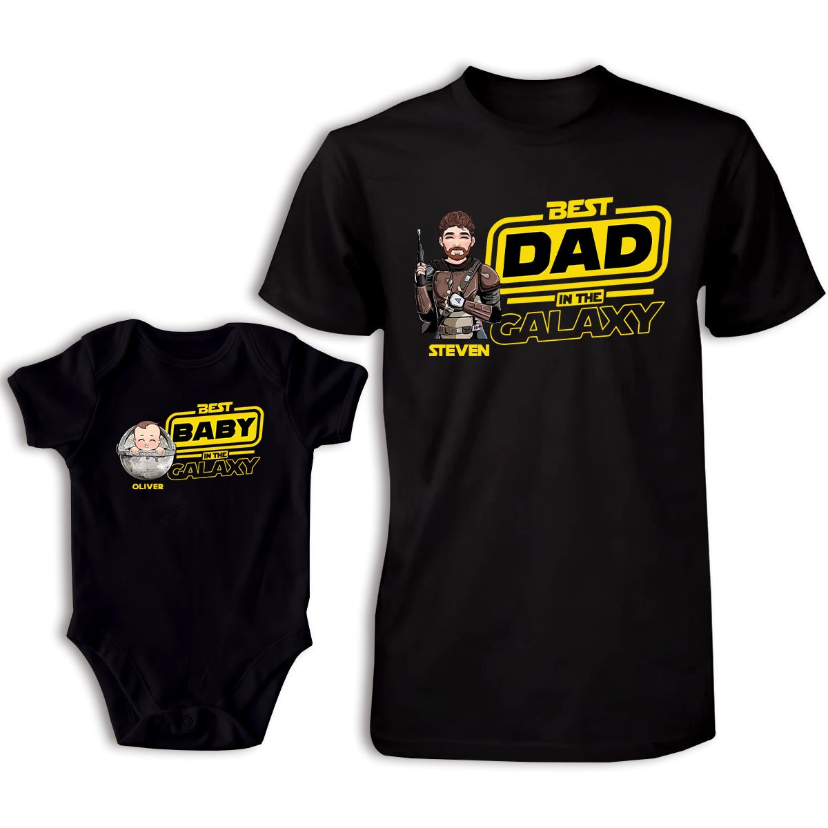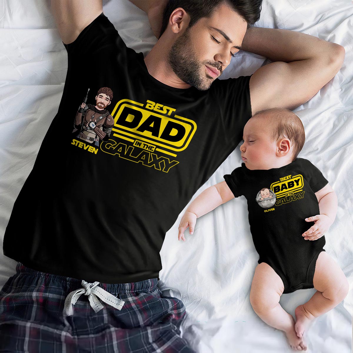 Best Dad In The Galaxy - Personalized Father T-shirt And Baby Onesie