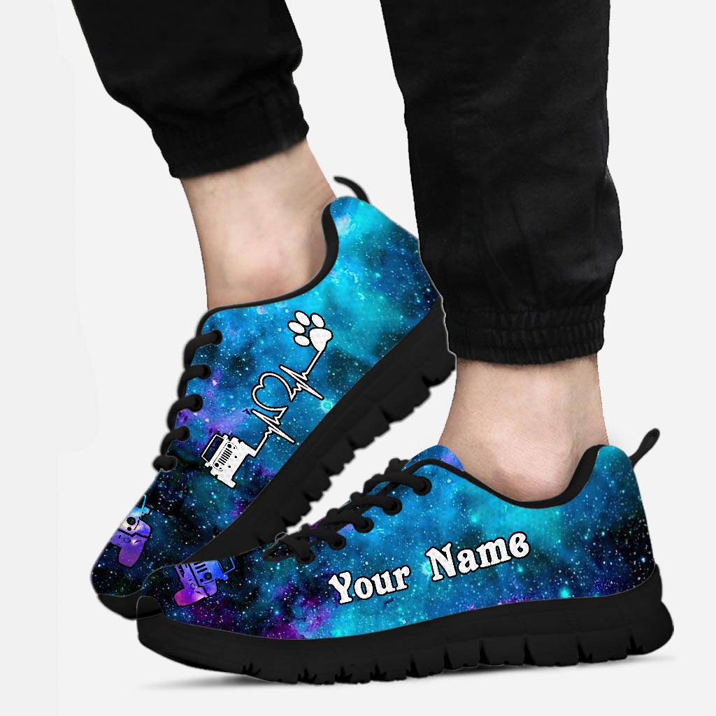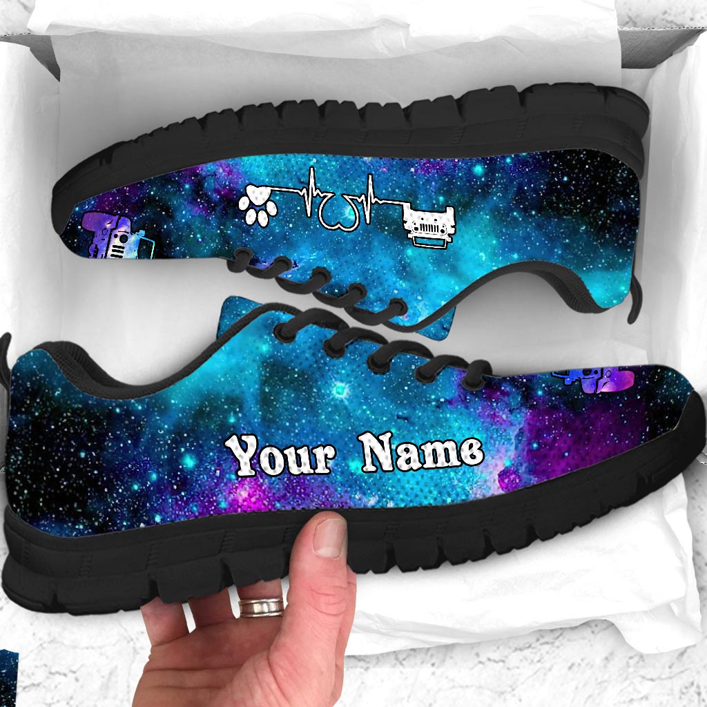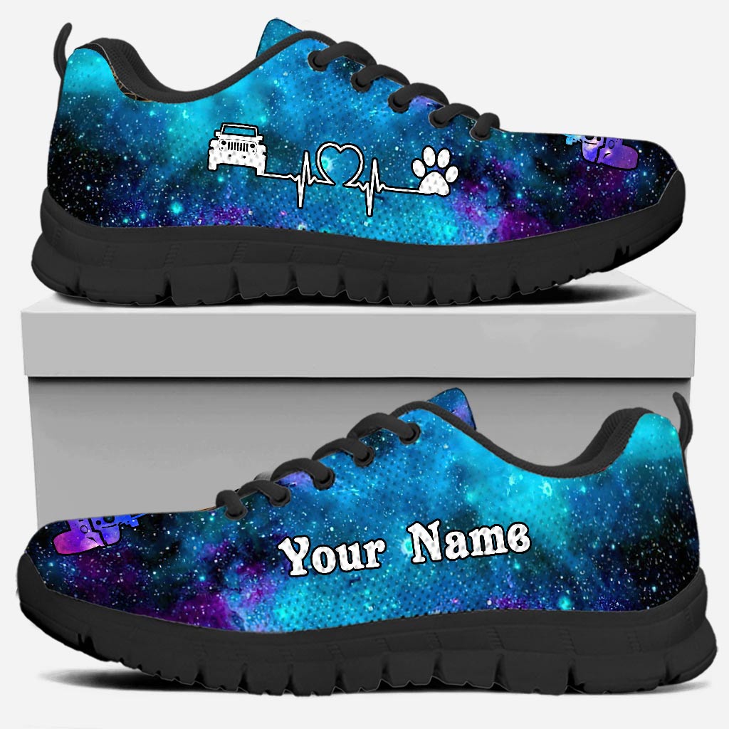 A Girl Her Jp And Her Dog - Personalized Car Sneakers