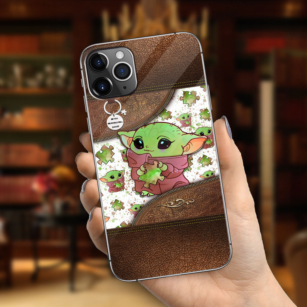 Be You The World Will Adjust - Personalized Autism Awareness Phone Case With Leather Pattern Print
