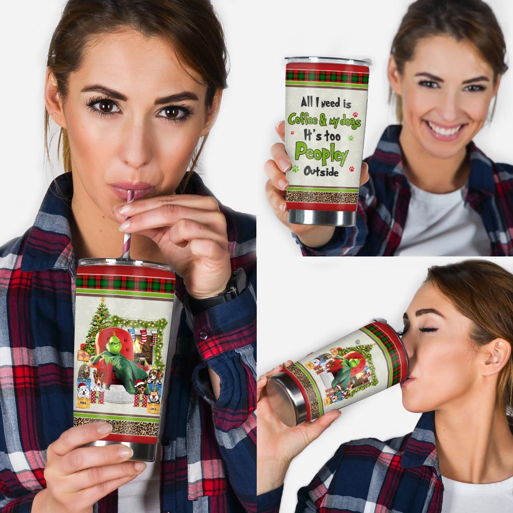 All I Need Is Coffee & My Dogs It's Too Peopley Outside - Personalized Dog Tumbler