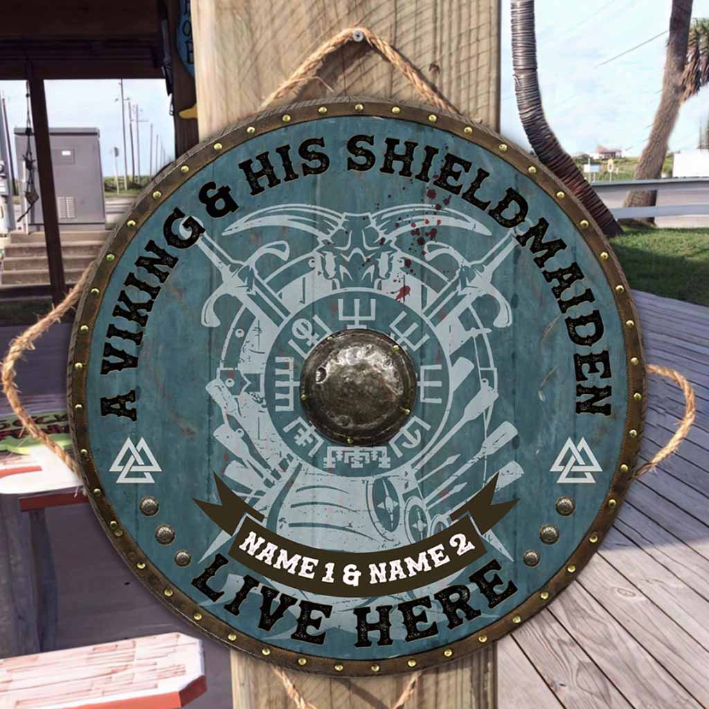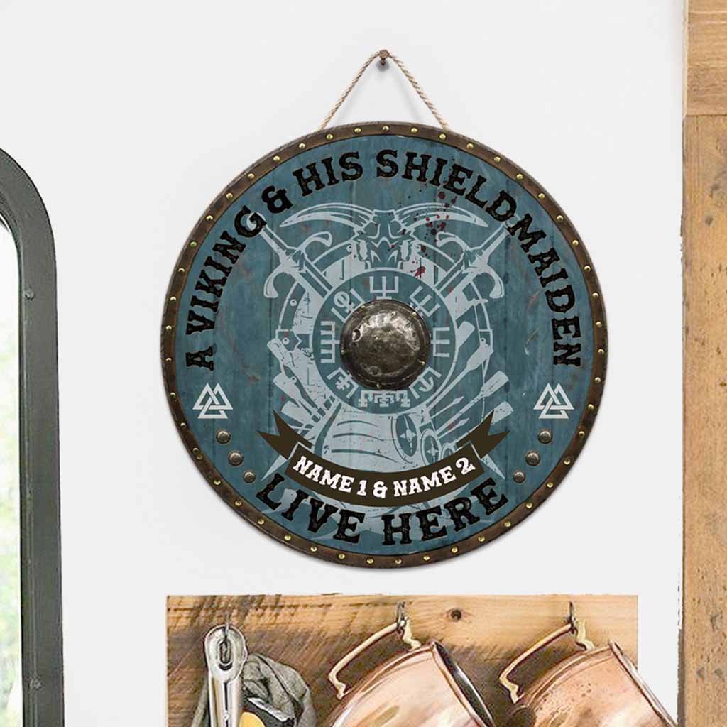 A Viking King And His Shieldmaiden Customized Round Wood Sign