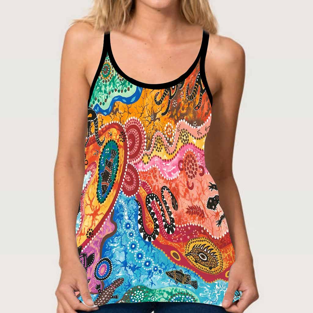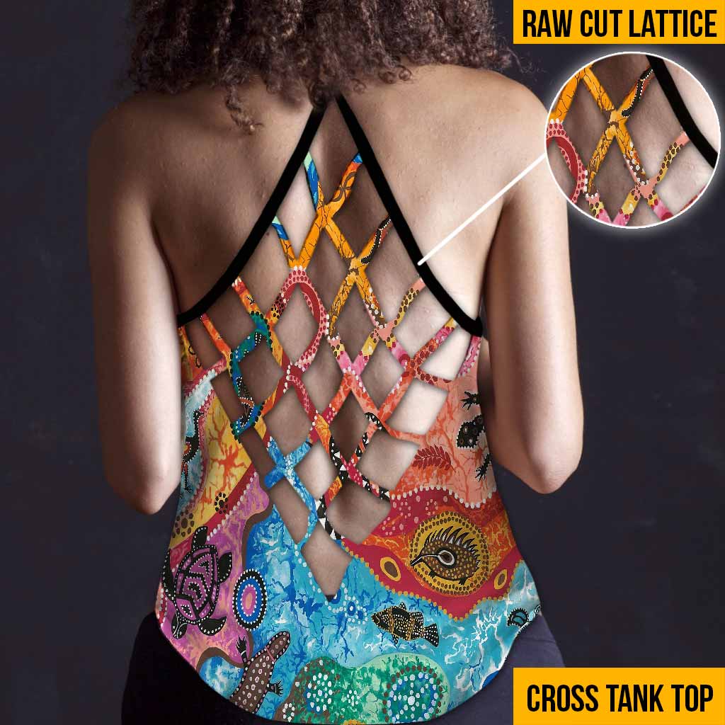 Premium Cross Tank Top: Back lattice is made of triple-layered black stretch fabric and is oversewn (so it cannot be printed)