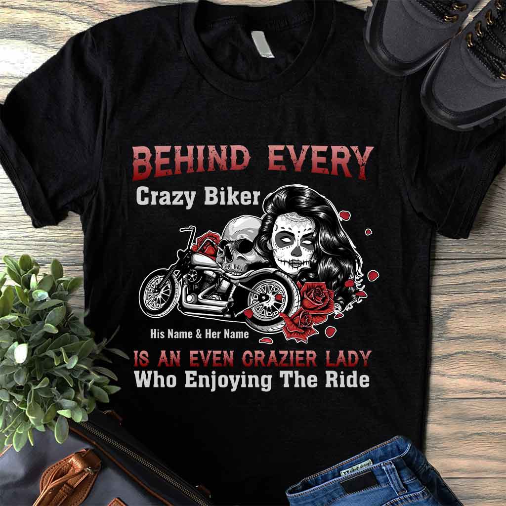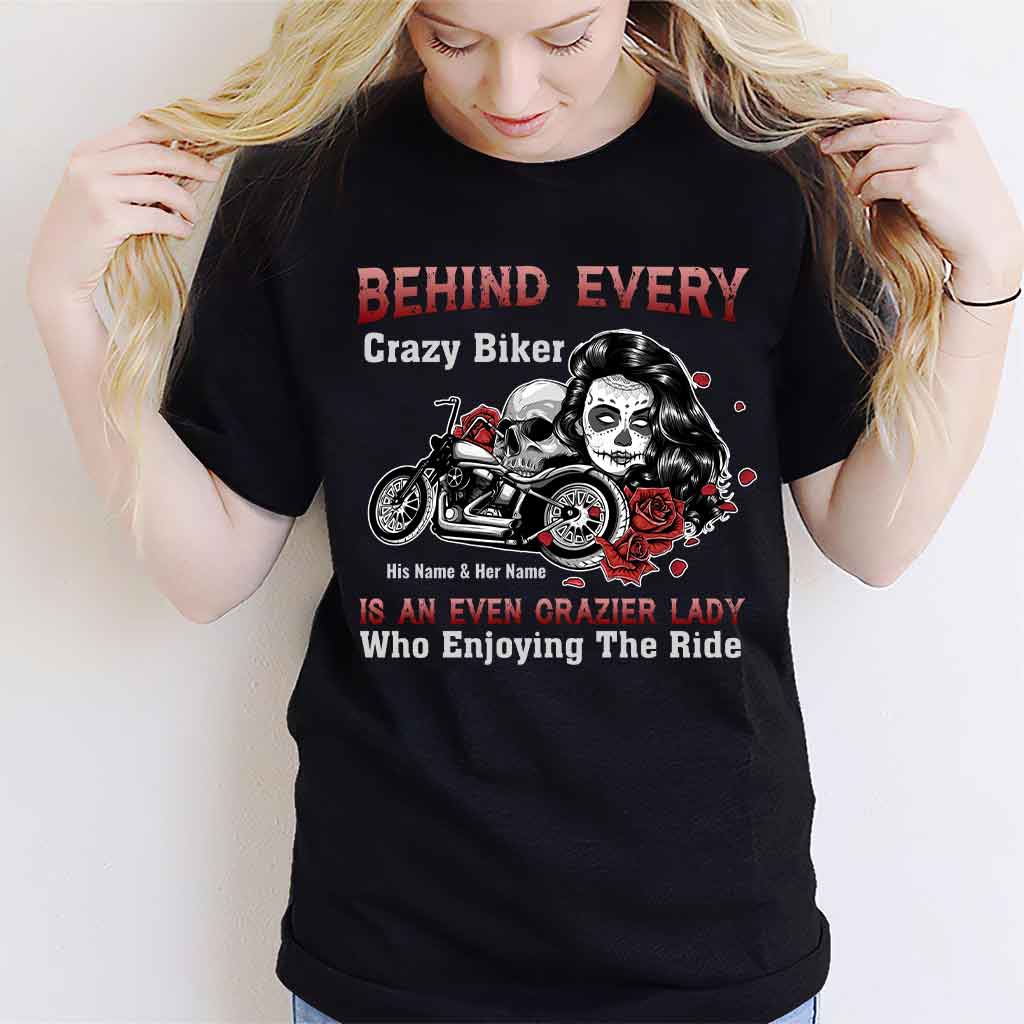 Behind Every Crazy Biker Motorcycle Couple - Personalized T-shirt and Hoodie