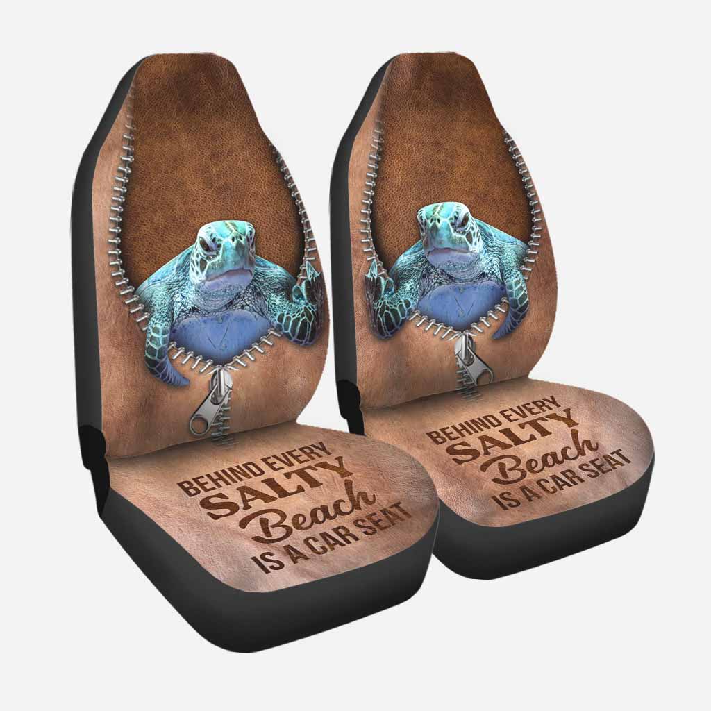 Behind Every Salty Beach - Turtle Seat Covers With Leather Pattern Print