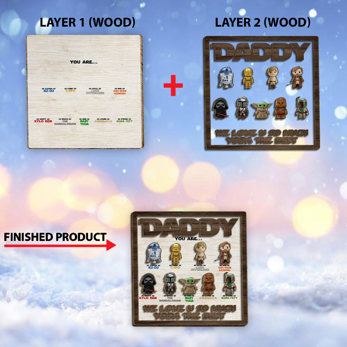Best Dad In The Galaxy - Personalized The Force 2 Layered Wood Sign / Wood Plaque