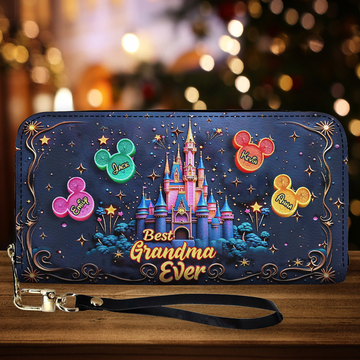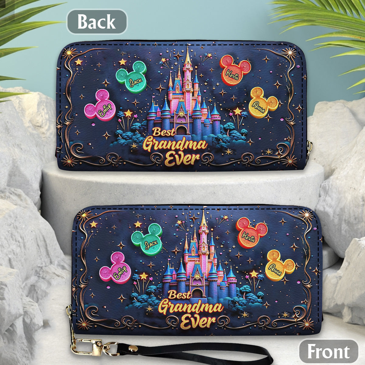 Best Grandma/ Mom Ever - Personalized Mouse Leather Long Wallet