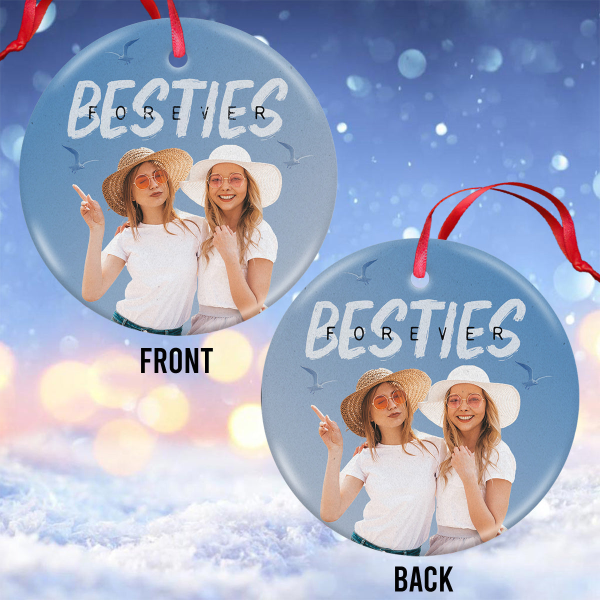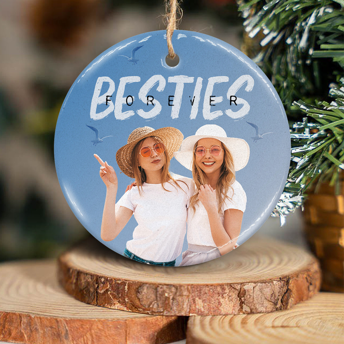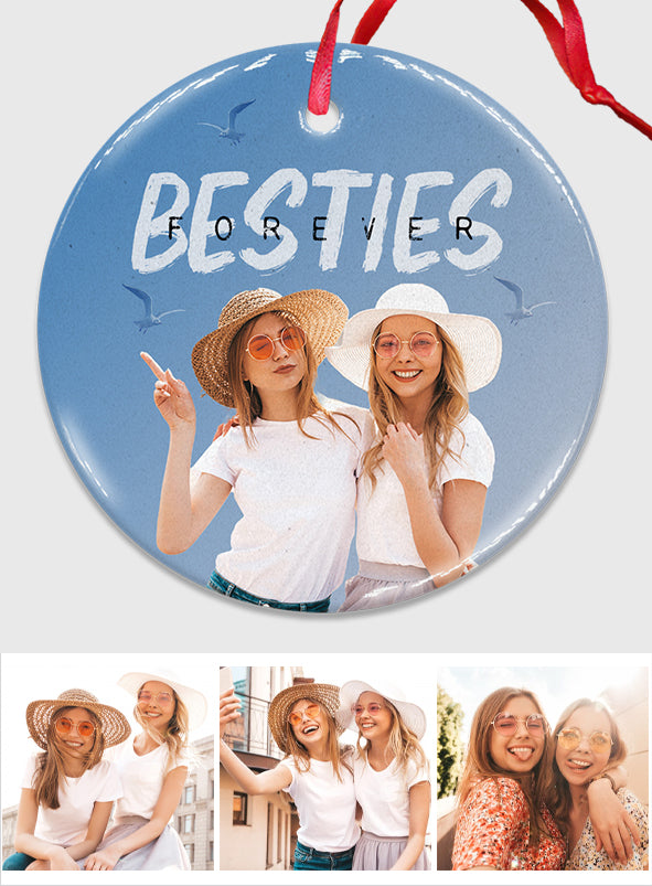 Bestie Forever Vintage Blue - Personalized Bestie Ceramic Circle Ornament