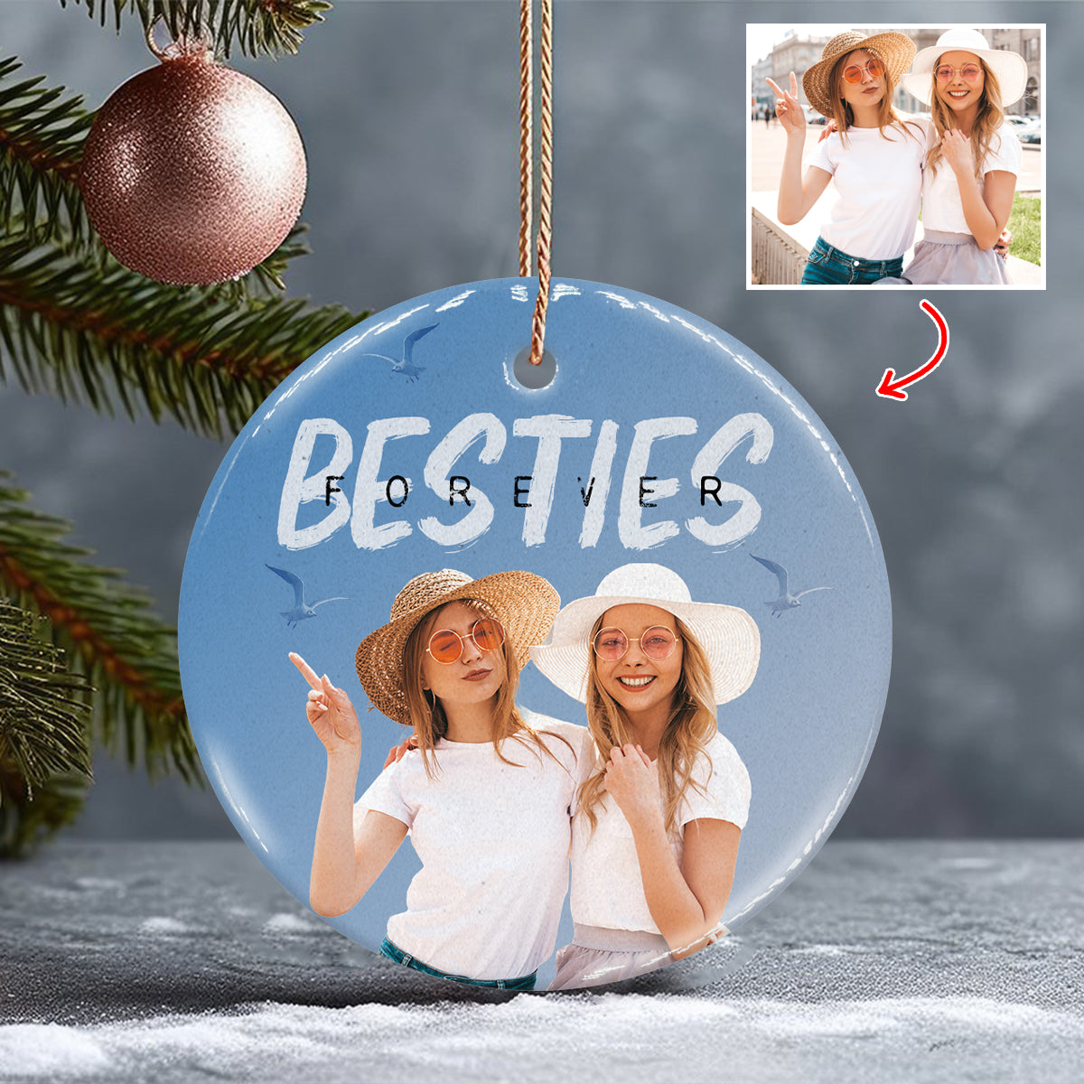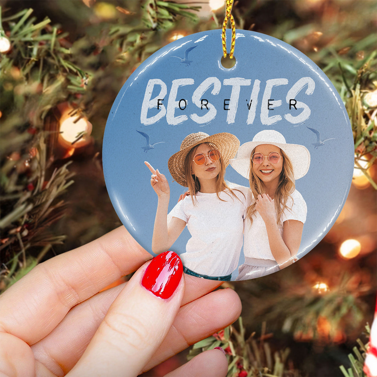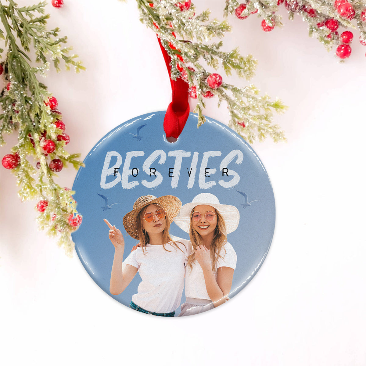 Bestie Forever Vintage Blue - Personalized Bestie Ceramic Circle Ornament