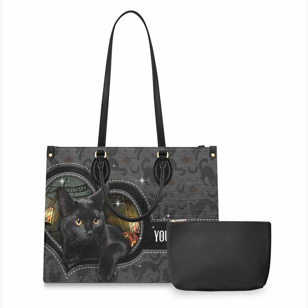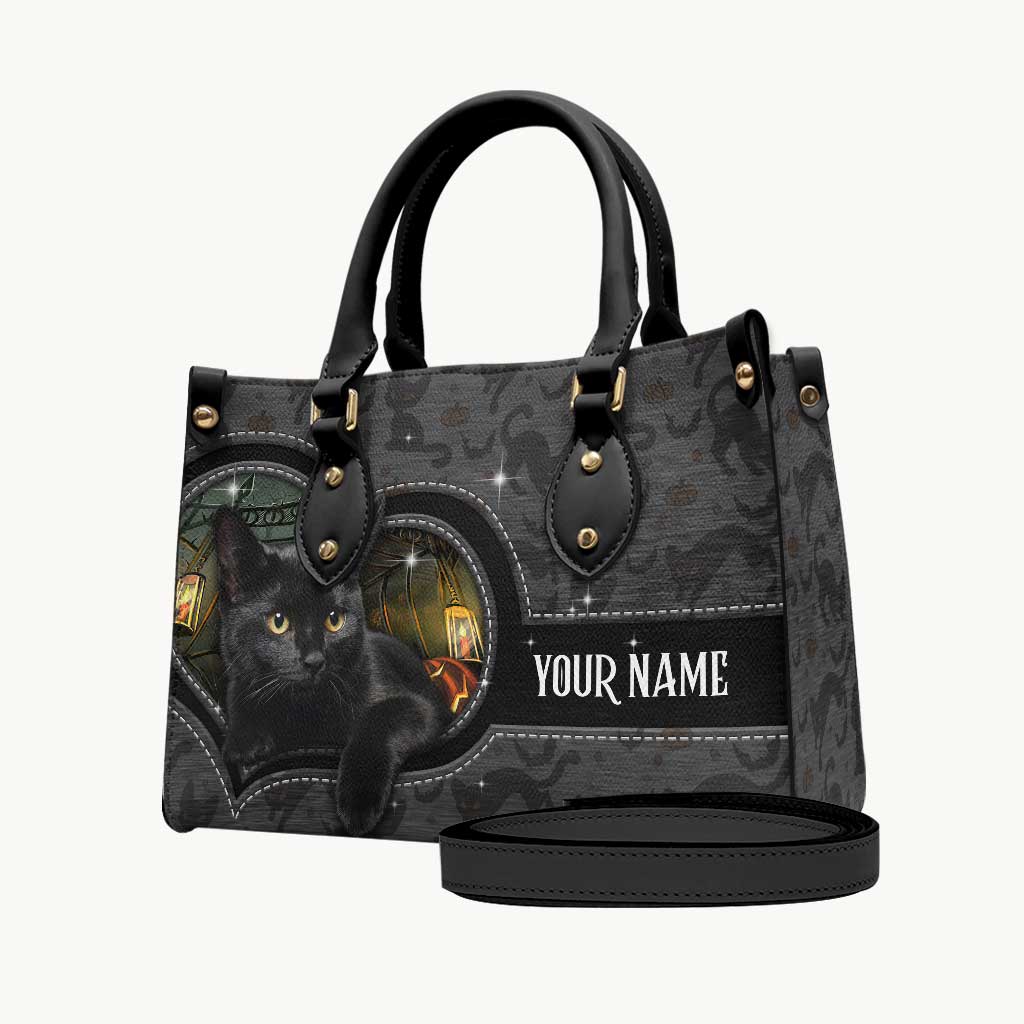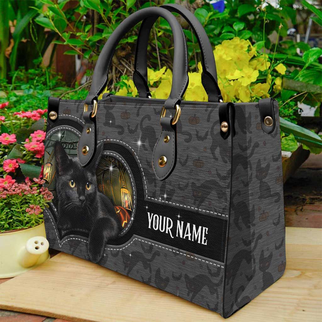 Black Cat Pumpkin - Personalized Halloween Leather Handbag