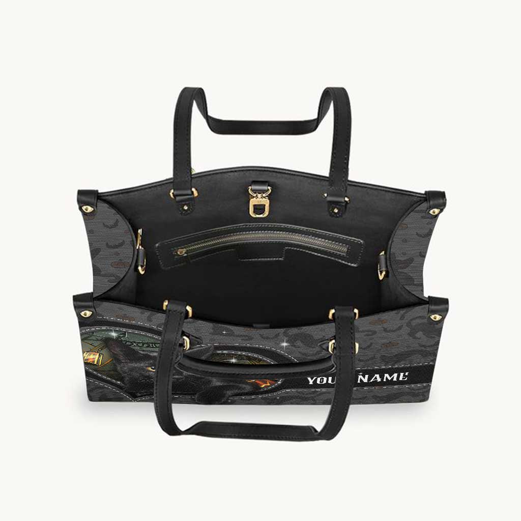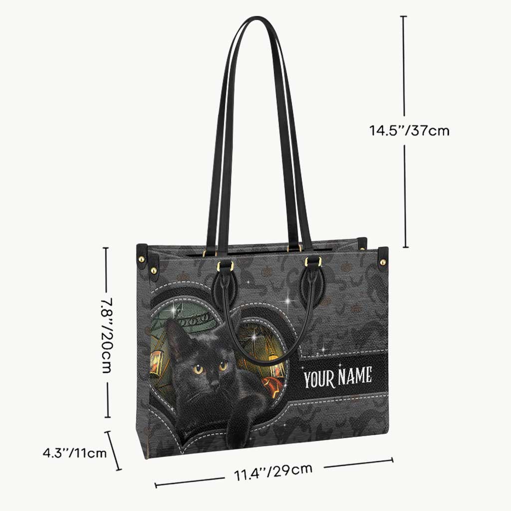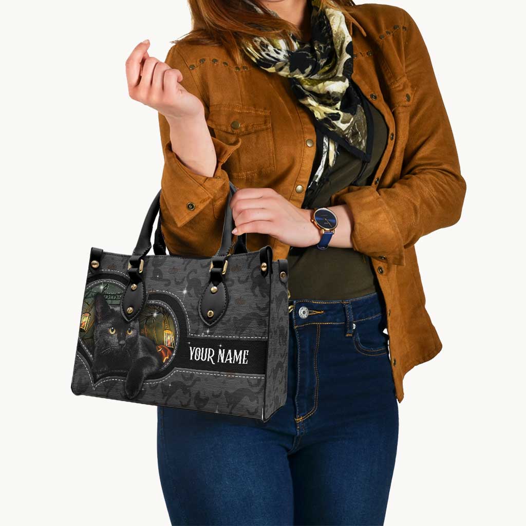 Black Cat Pumpkin - Personalized Halloween Leather Handbag