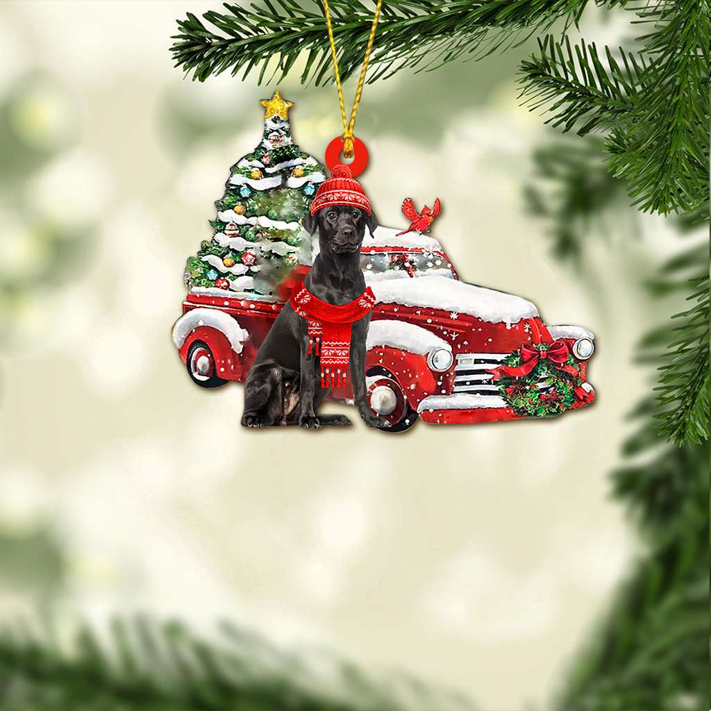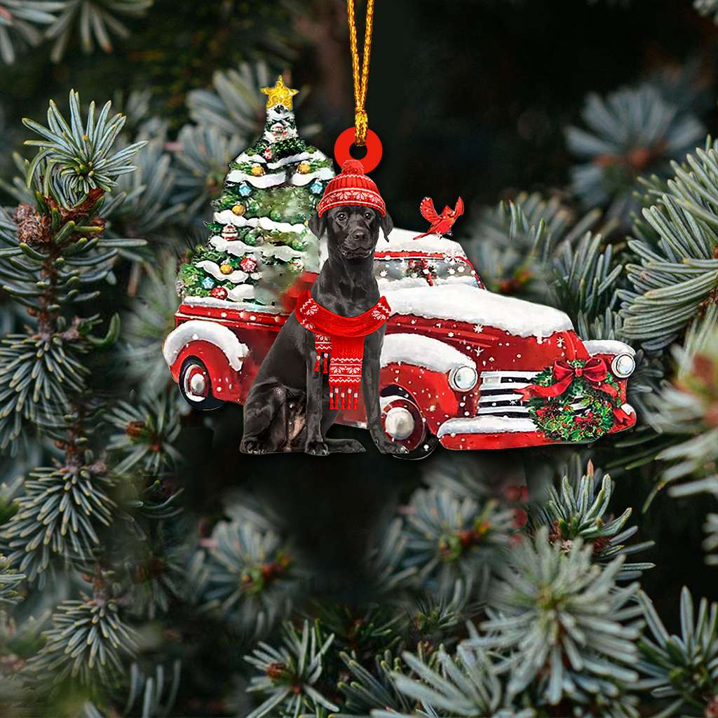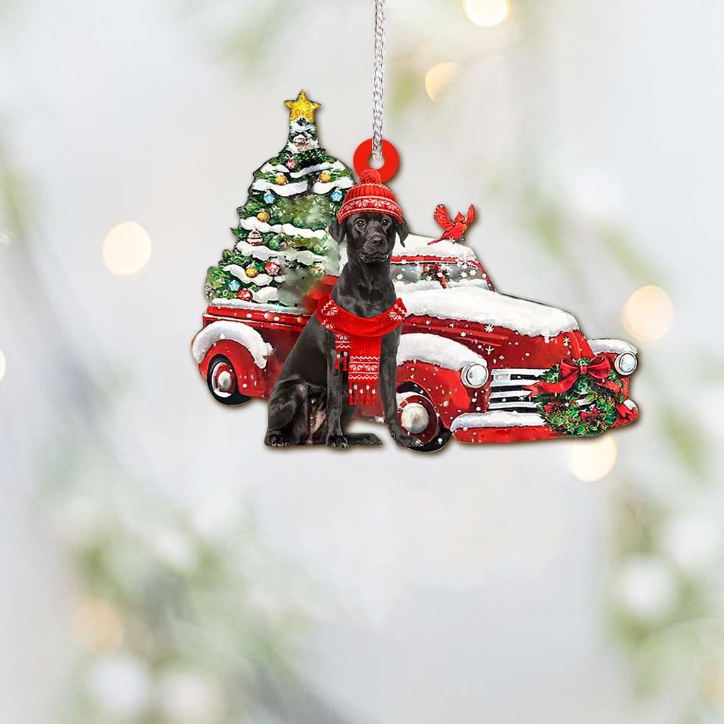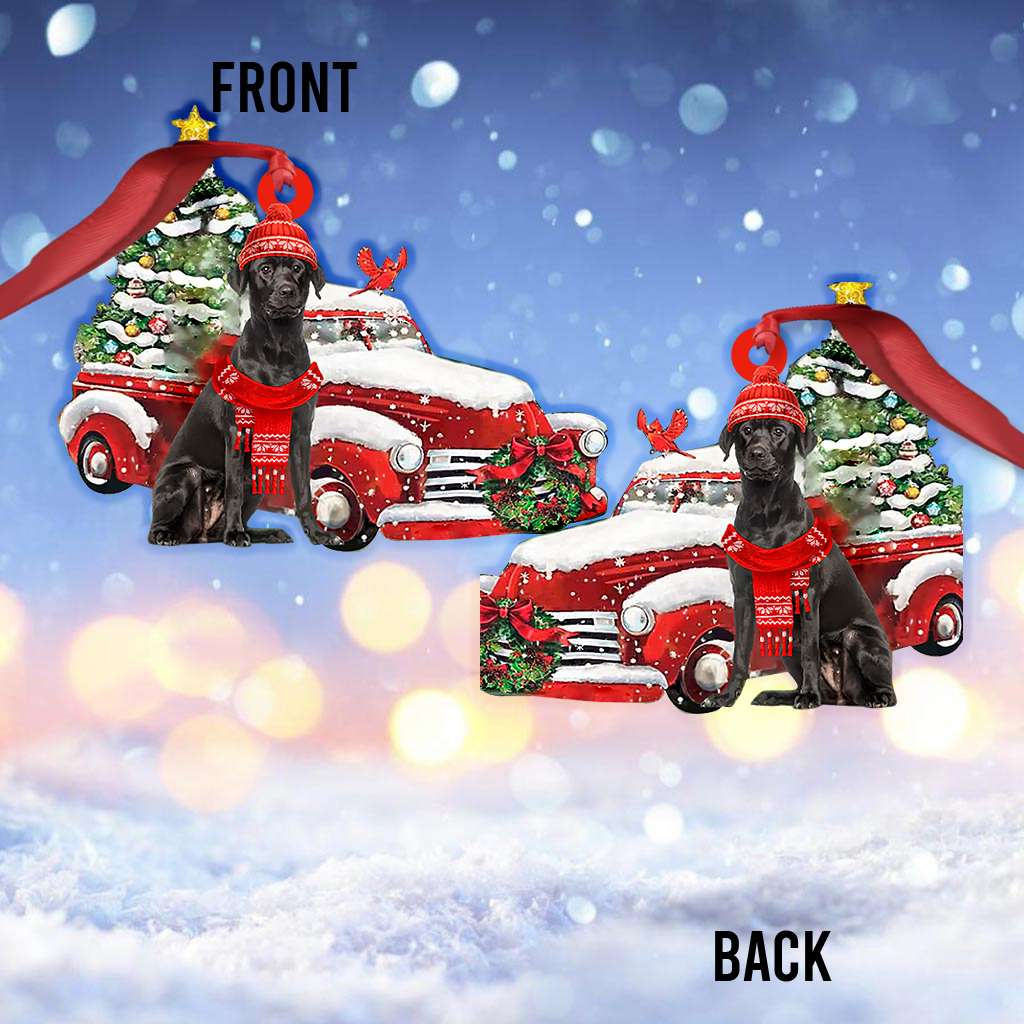 Black Labrador Red Truck Labrador - Retriever Ornament (Printed On Both Sides) 1022