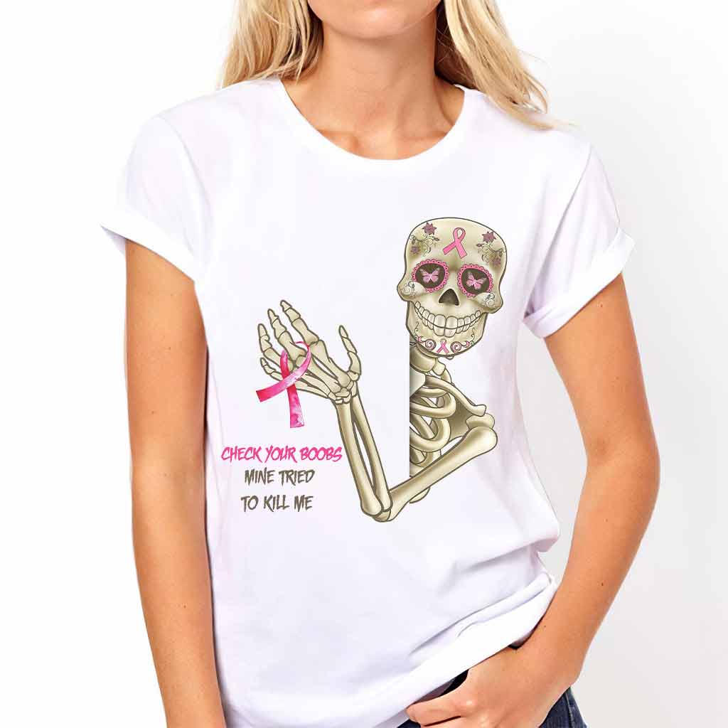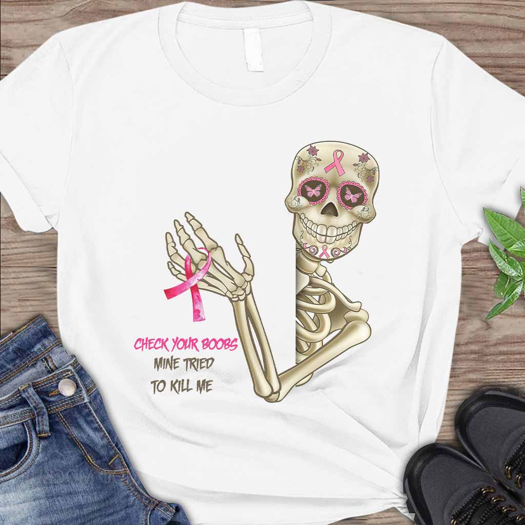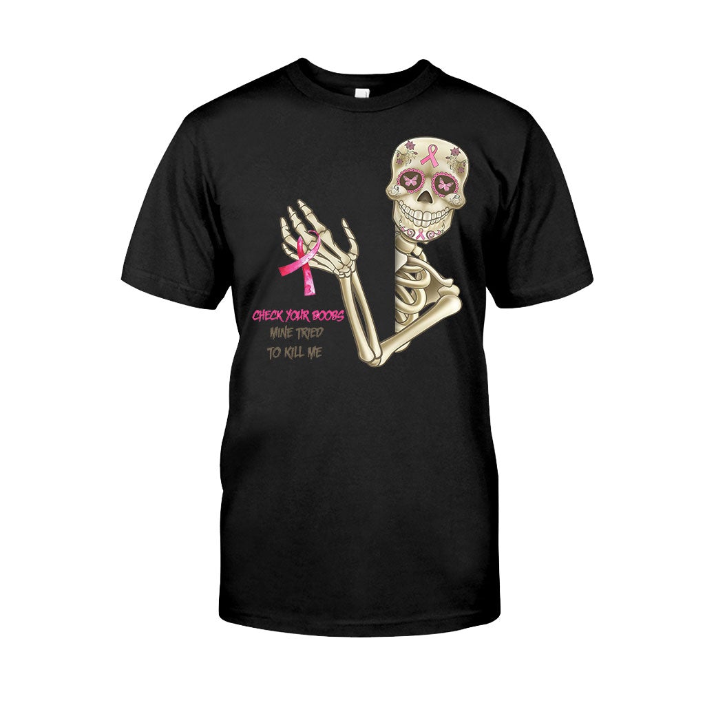 Check Your Boobs Mine Tried To Kill Me - Breast Cancer Awareness T-shirt and Hoodie 102021