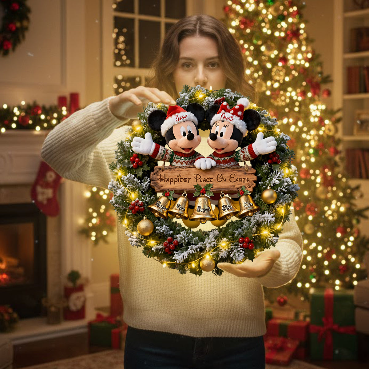 Christmas Bells Wreath With Led Light - Personalized Mouse LED Light Acrylic Sign