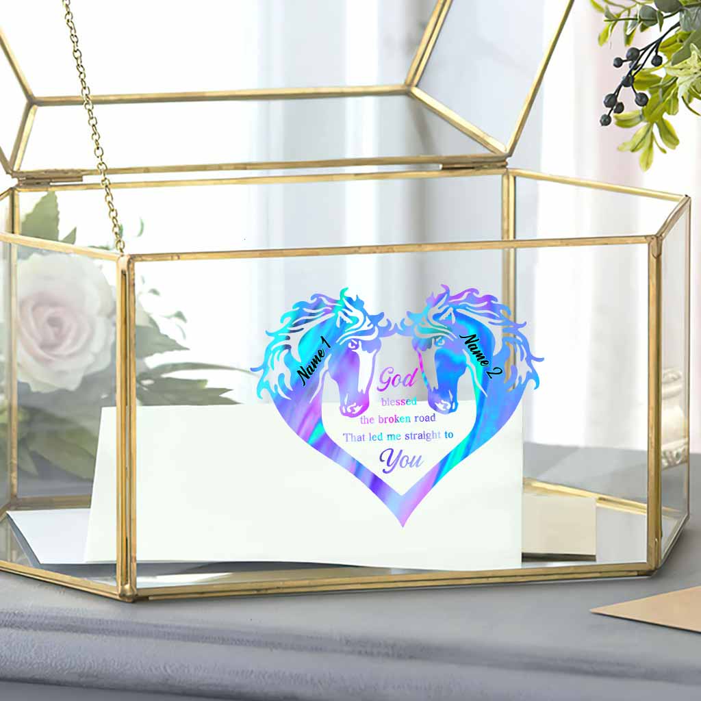 God Blessed The Broken Road - Personalized Couple Horse Decal Full