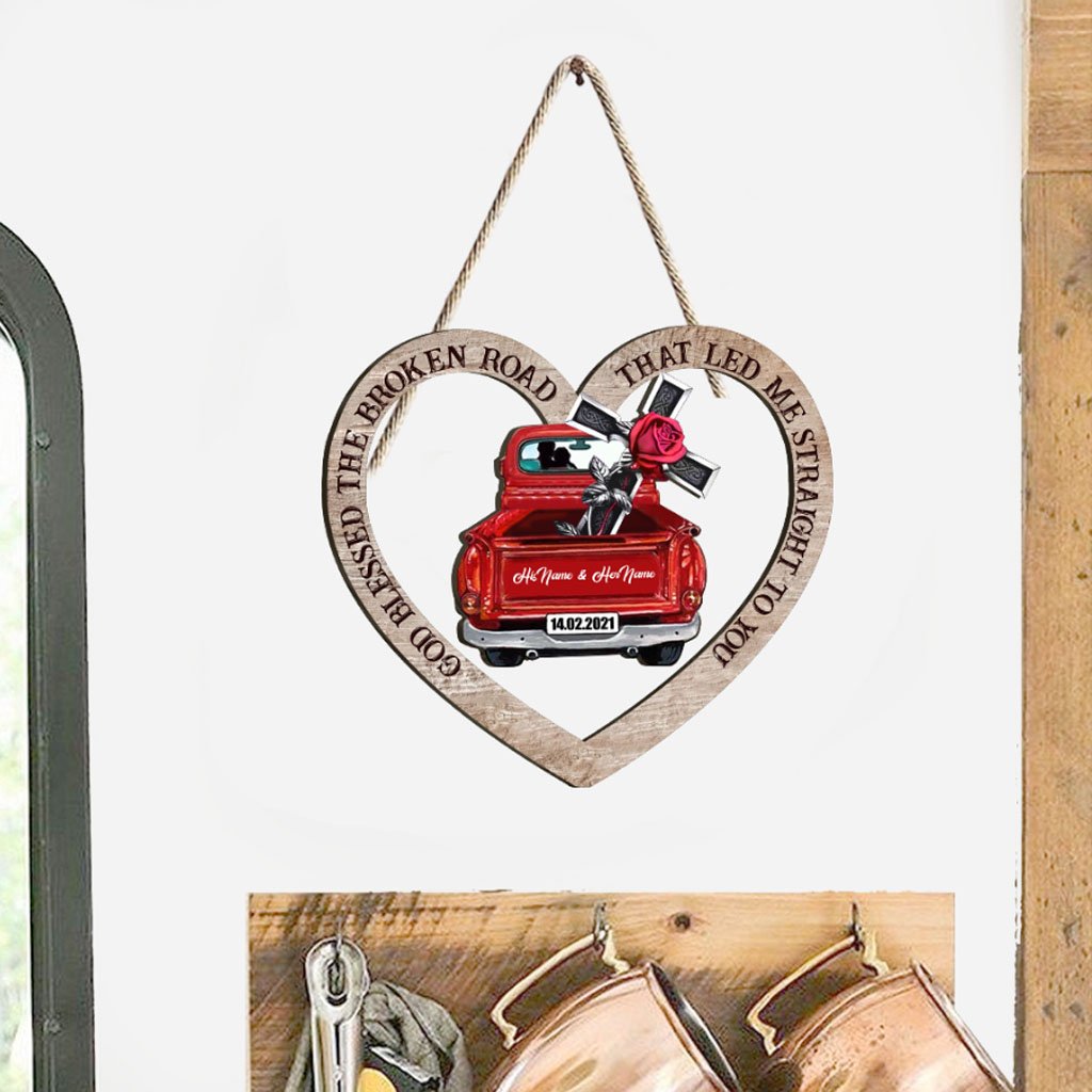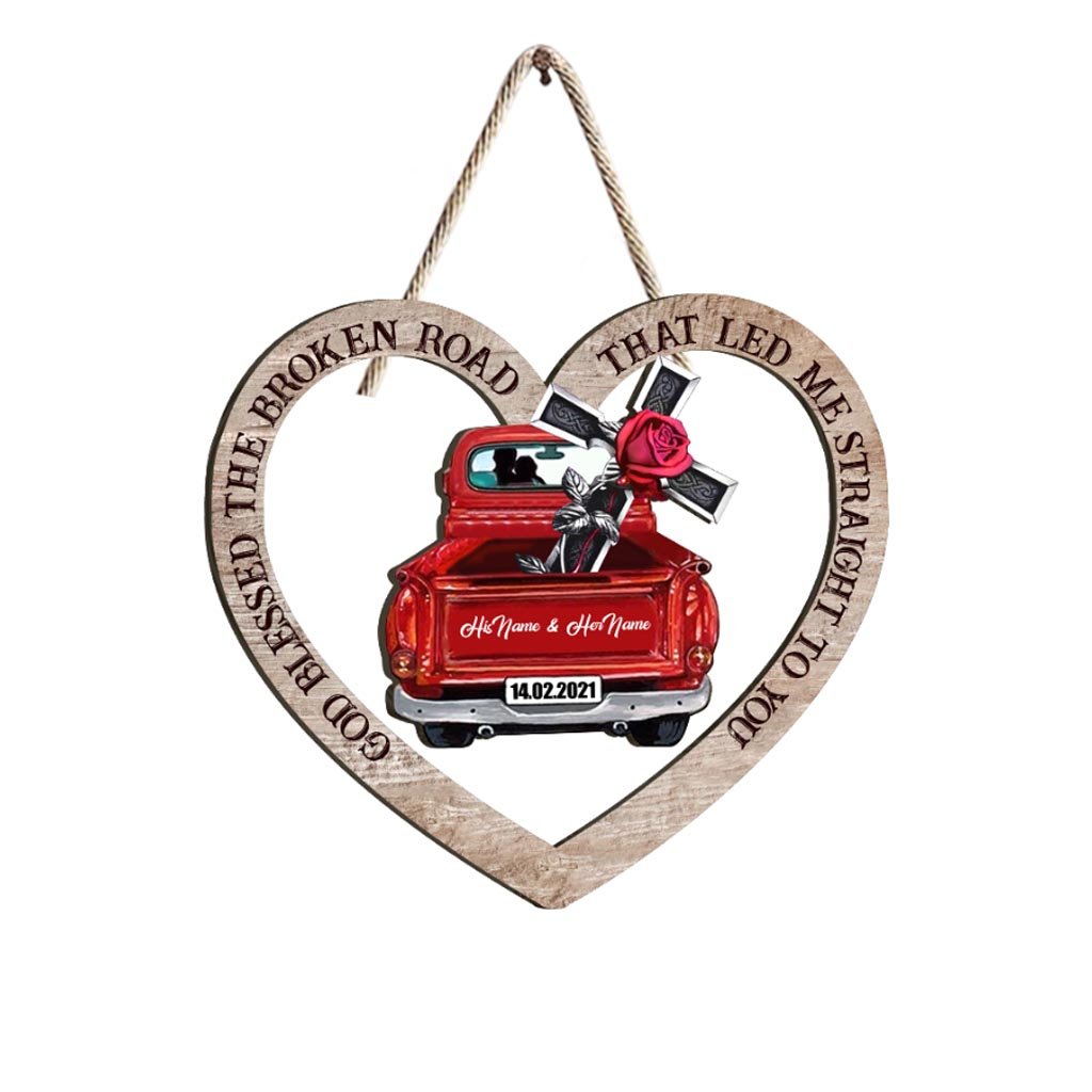 God Blessed The Broken Road - Personalized Couple Wood Sign