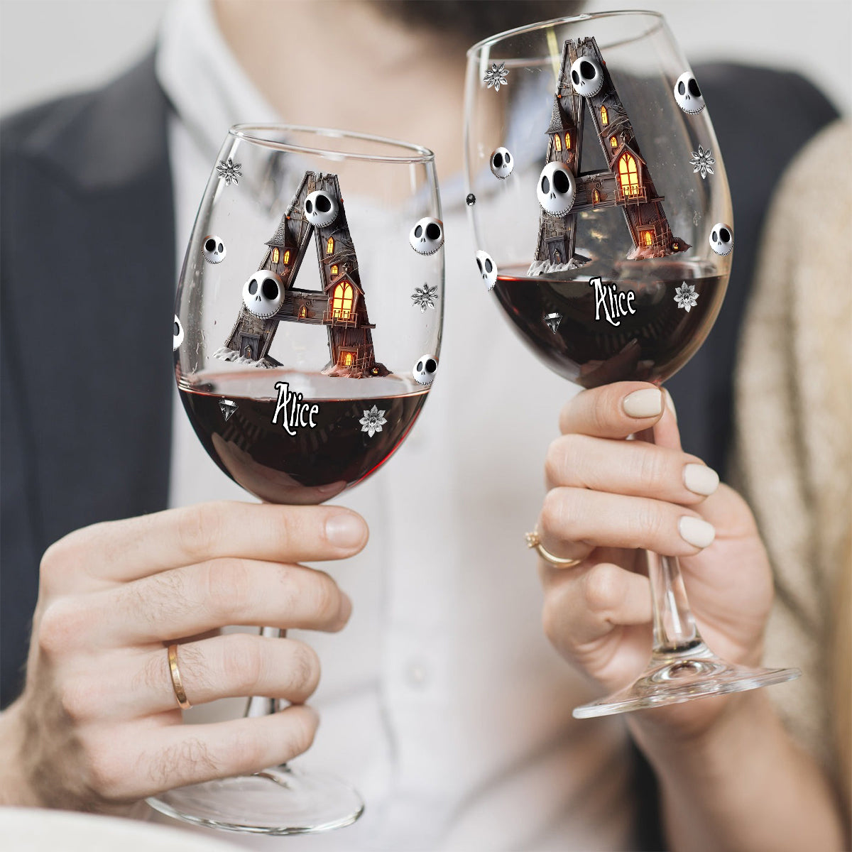 Halloween Before Christmas - Personalized Nightmare Wine Glass With Long Stem