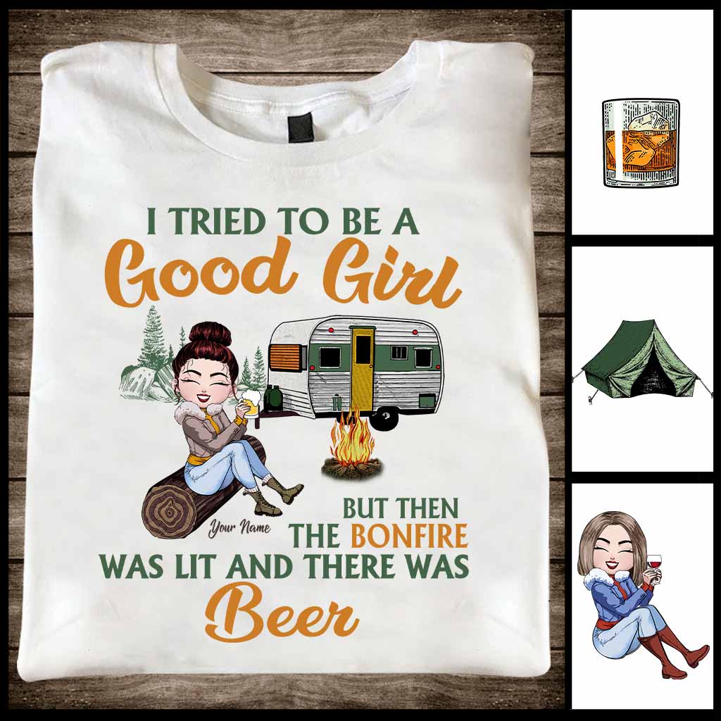 I Tried To Be A Good Girl But The Bonfire - Personalized Camping T-shirt and Hoodie