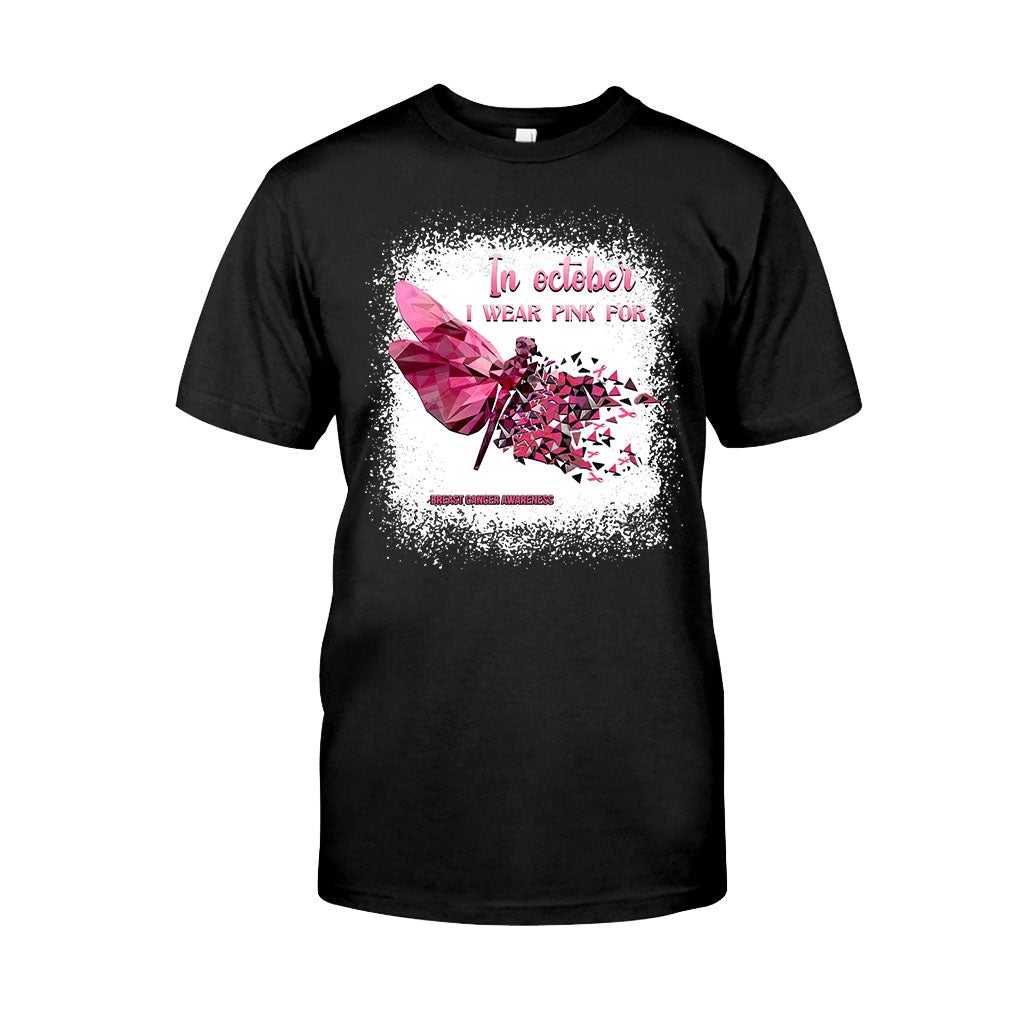 In October I Wear Pink Dragonfly Polygonal - Breast Cancer Awareness Personalized T-shirt And Hoodie