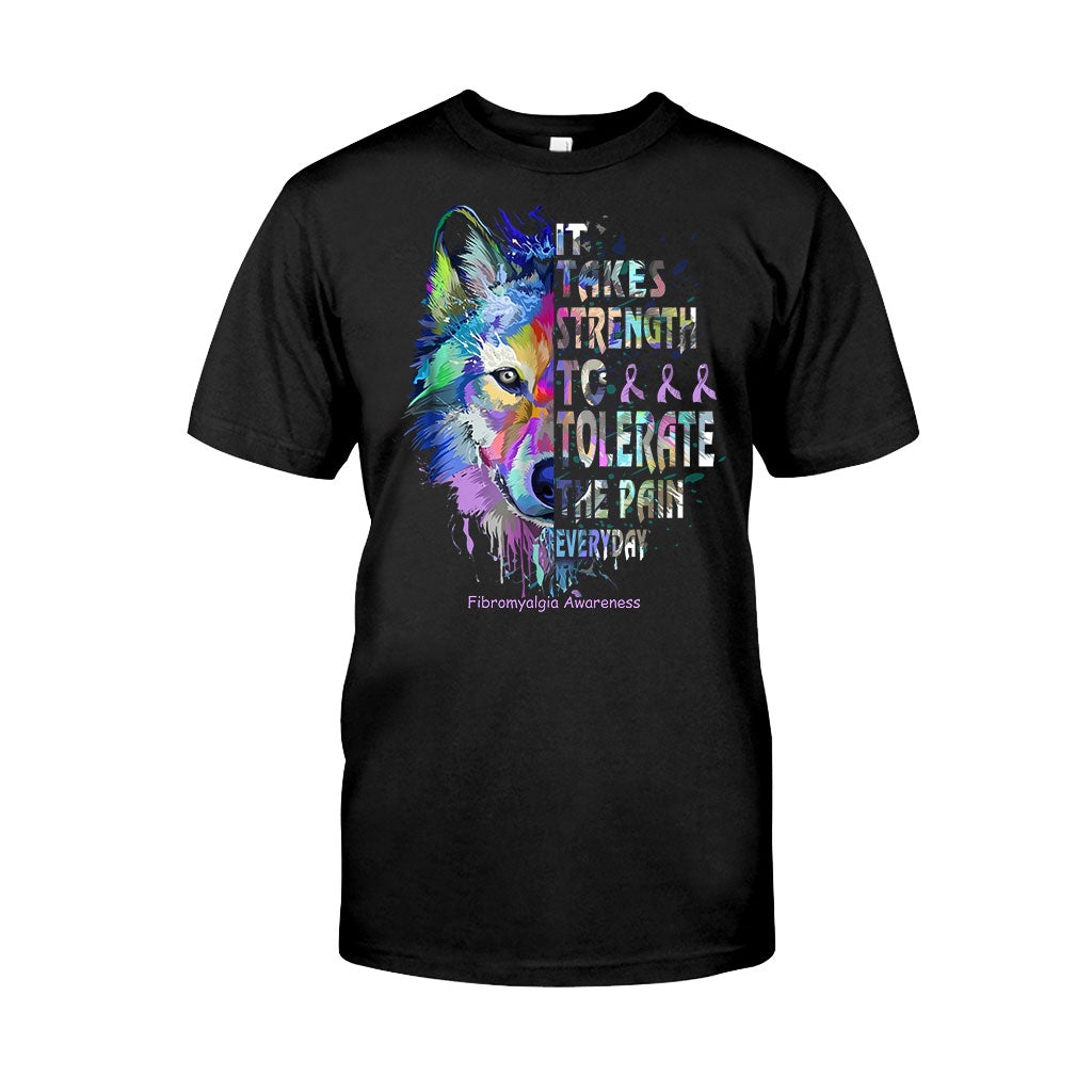 It Takes Strength Purple Wolf - Fibromyalgia Awareness T-shirt and Hoodie 112021
