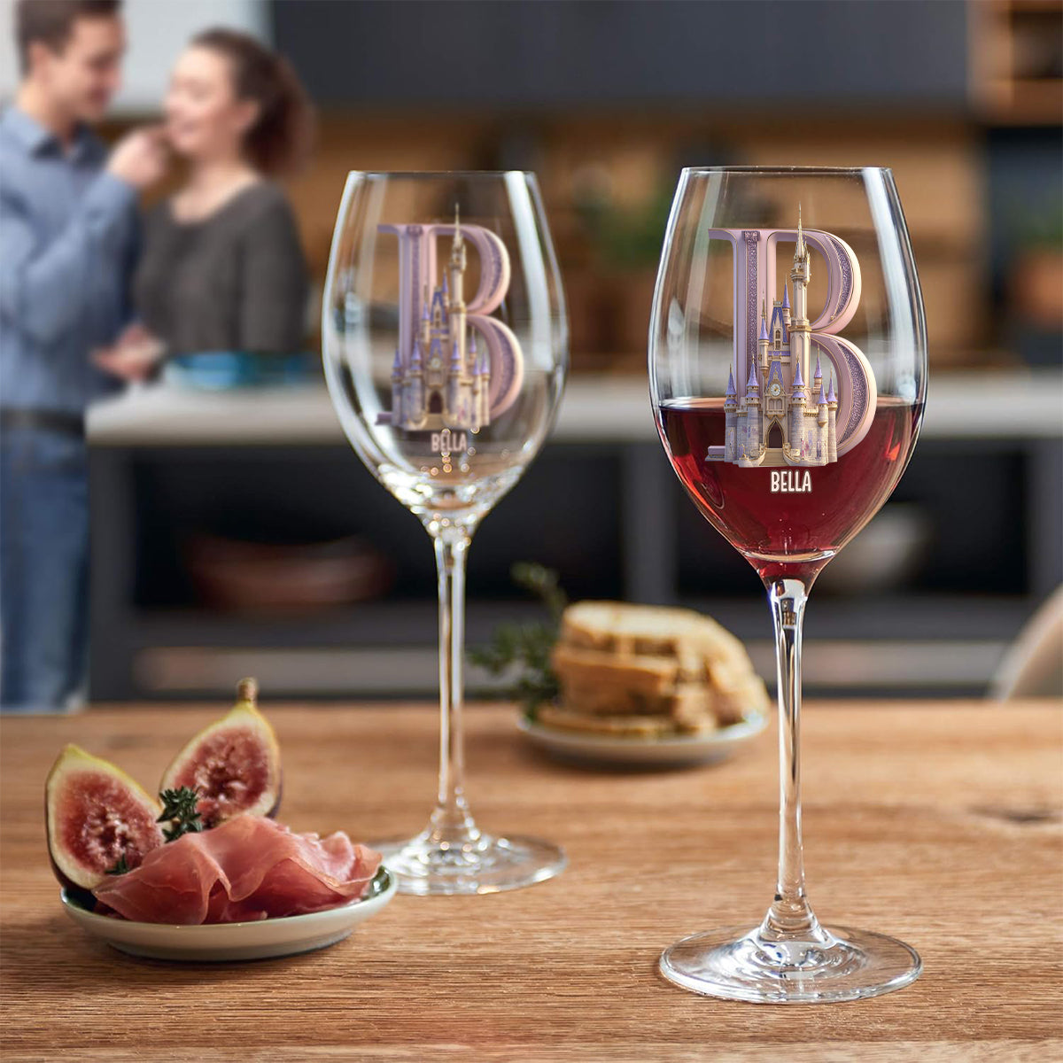 Magical Castle Custom Letter Alphabet - Personalized Mouse Wine Glass With Long Stem