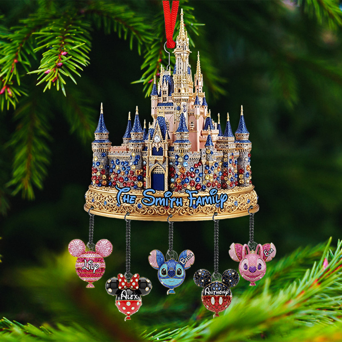 Magical Castle Family Ornament - Personalized Mouse Ornament With Charm