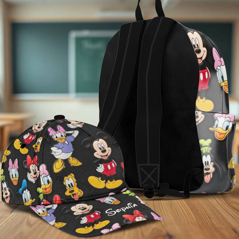 Get ready for both style and functionality with our Backpack and Classic Cap Set, the perfect duo for any adventure. The backpack is made from high-quality canvas, ensuring long-lasting durability and vibrant print effects. Featuring ergonomic shoulder straps with adjustable sizing, a fully padded back panel with breathable mesh fabric, and a waterproof zipper closure, this backpack is perfect for students, travelers, family outings, or daily use. The backpack also includes a small front zip pocket and 2 side pockets for added convenience.