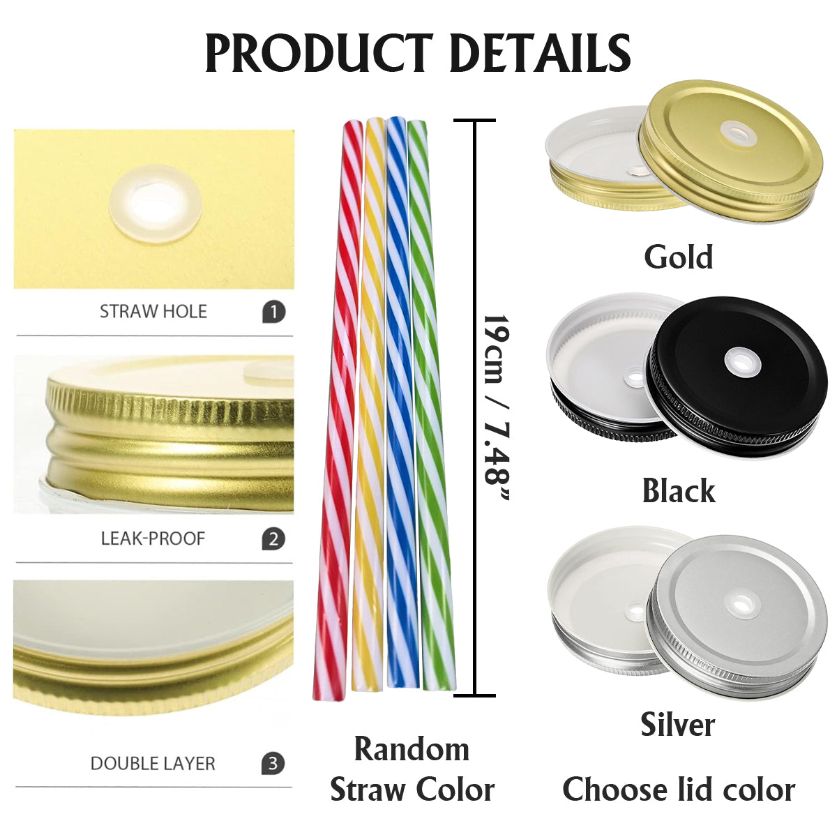 - 1x Mason Jar Cup + 1x Lid (color of choice) + 1x Straw (random color)