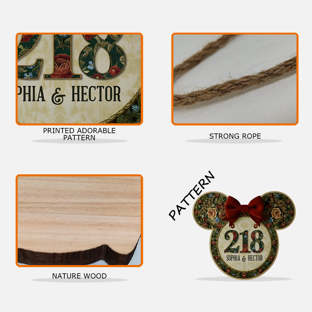 Mouse Ears Couple Heart - Personalized Mouse Wood Sign