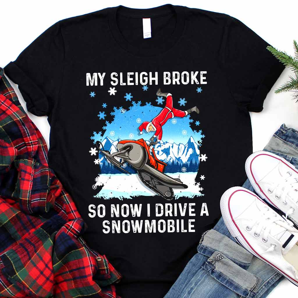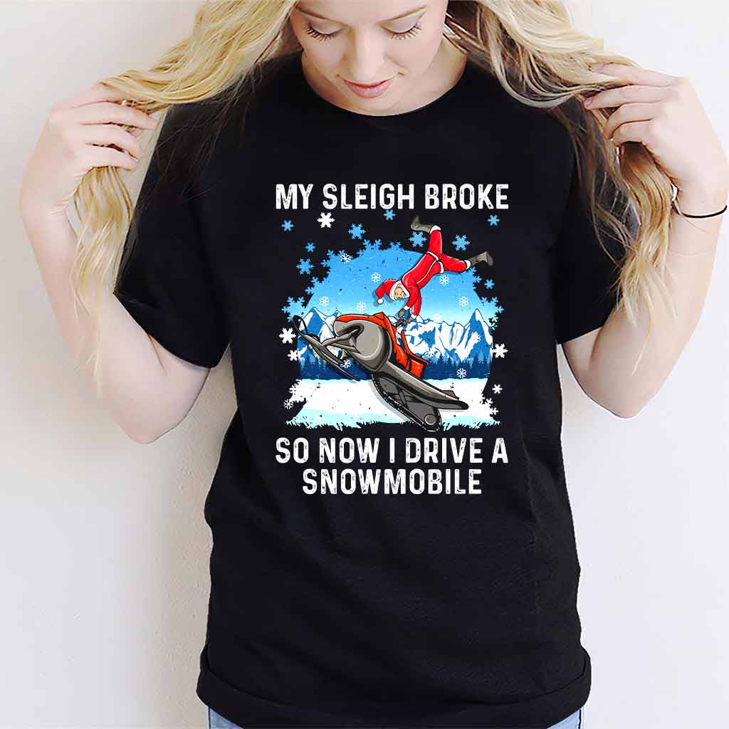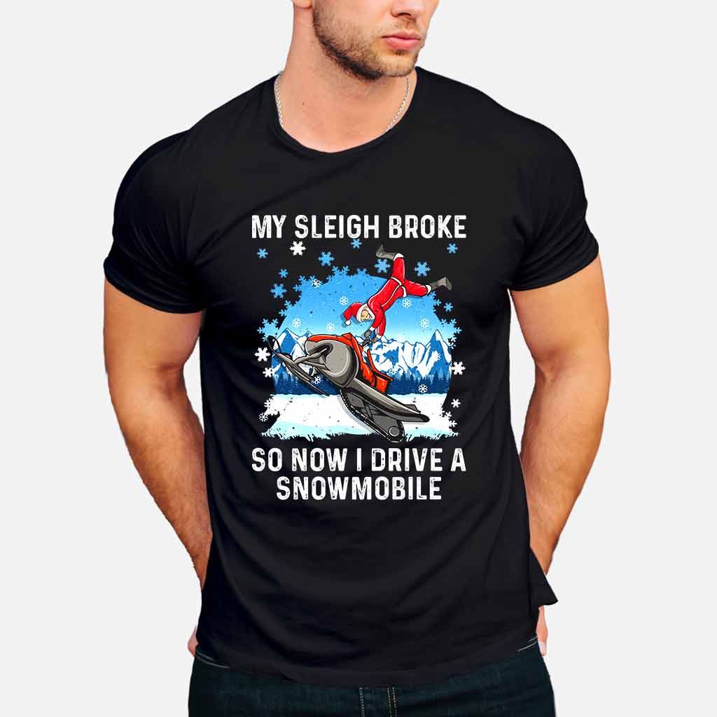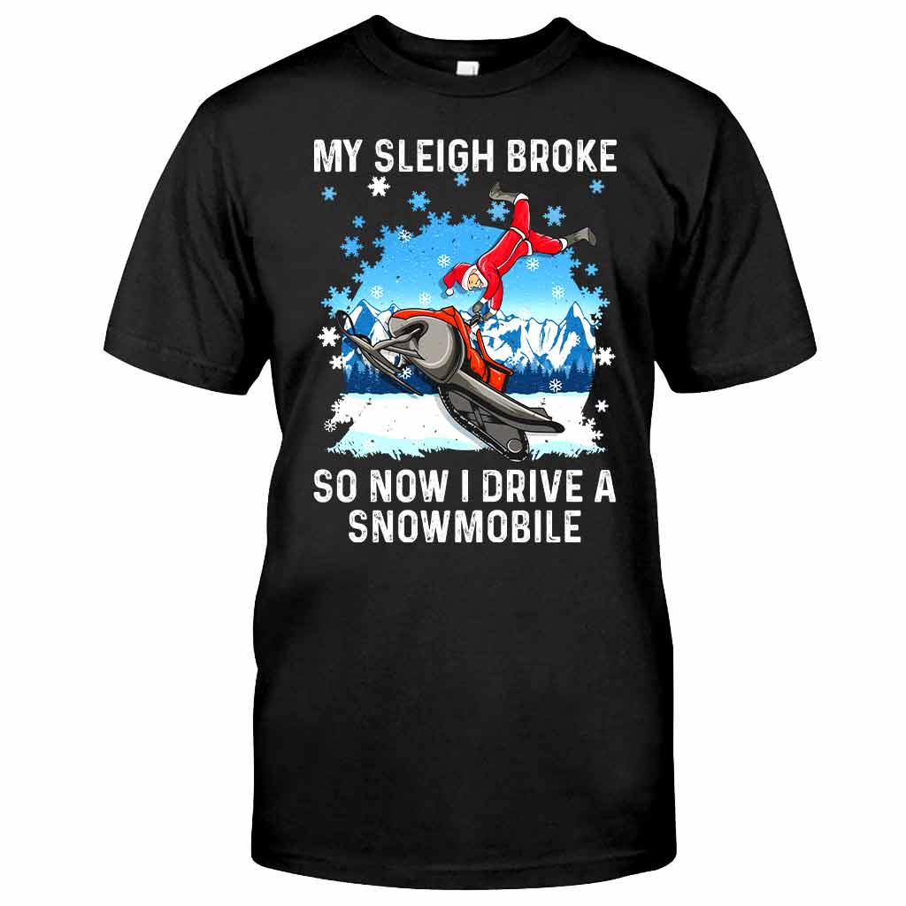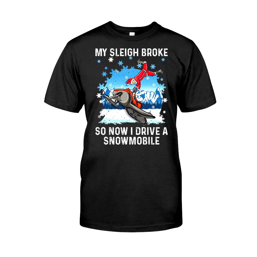 My Sleigh Broke So Now I Drive A Snowmobile - Christmas Snowmobiling T-shirt and Hoodie