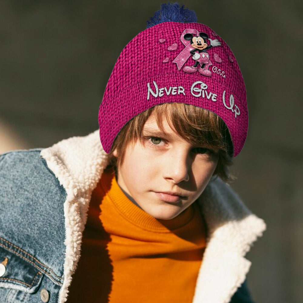 Never Give Up - Personalized Breast Cancer Awareness Beanie Hat