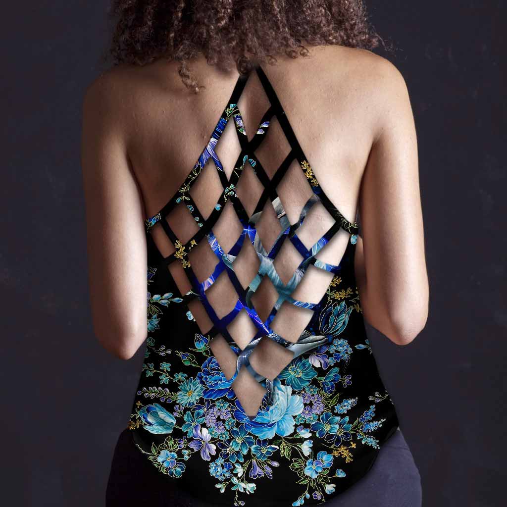 Premium Cross Tank Top: Back lattice is made of triple-layered black stretch fabric and is oversewn (so it cannot be printed)