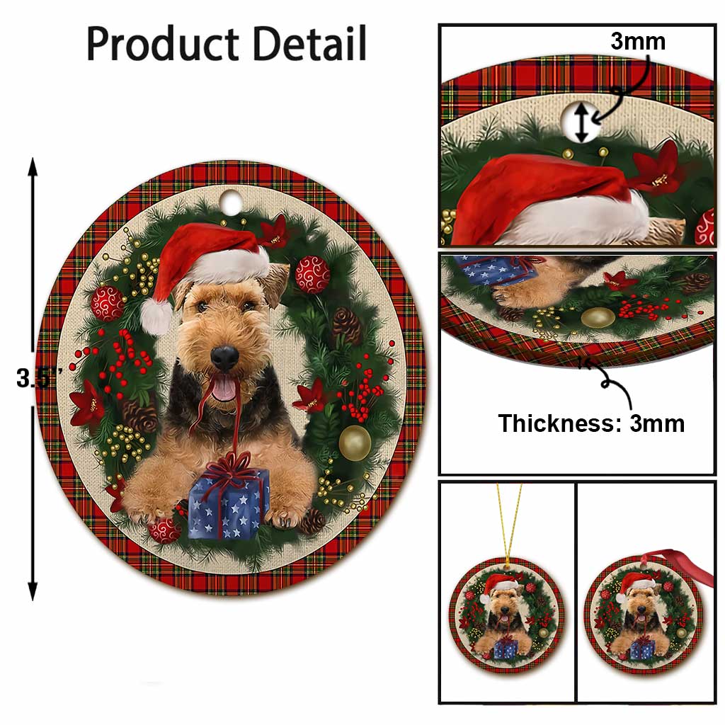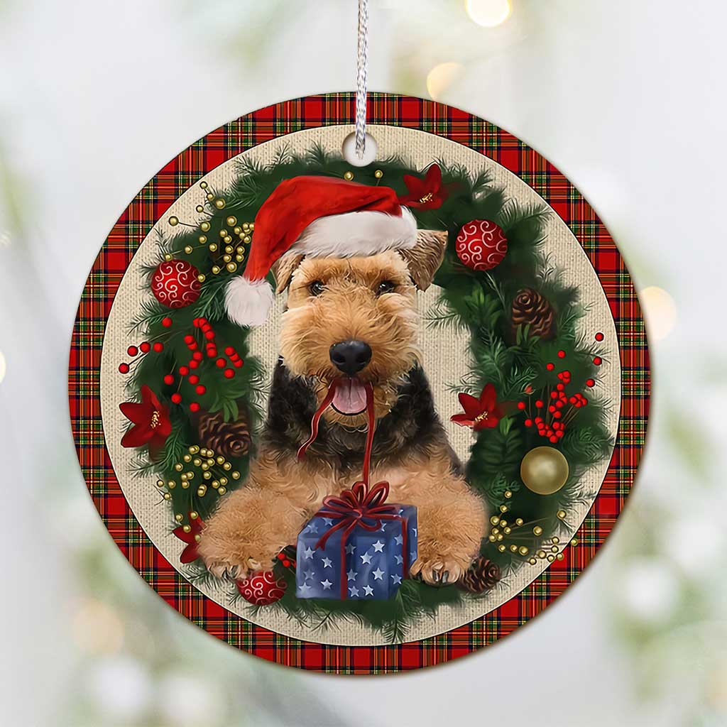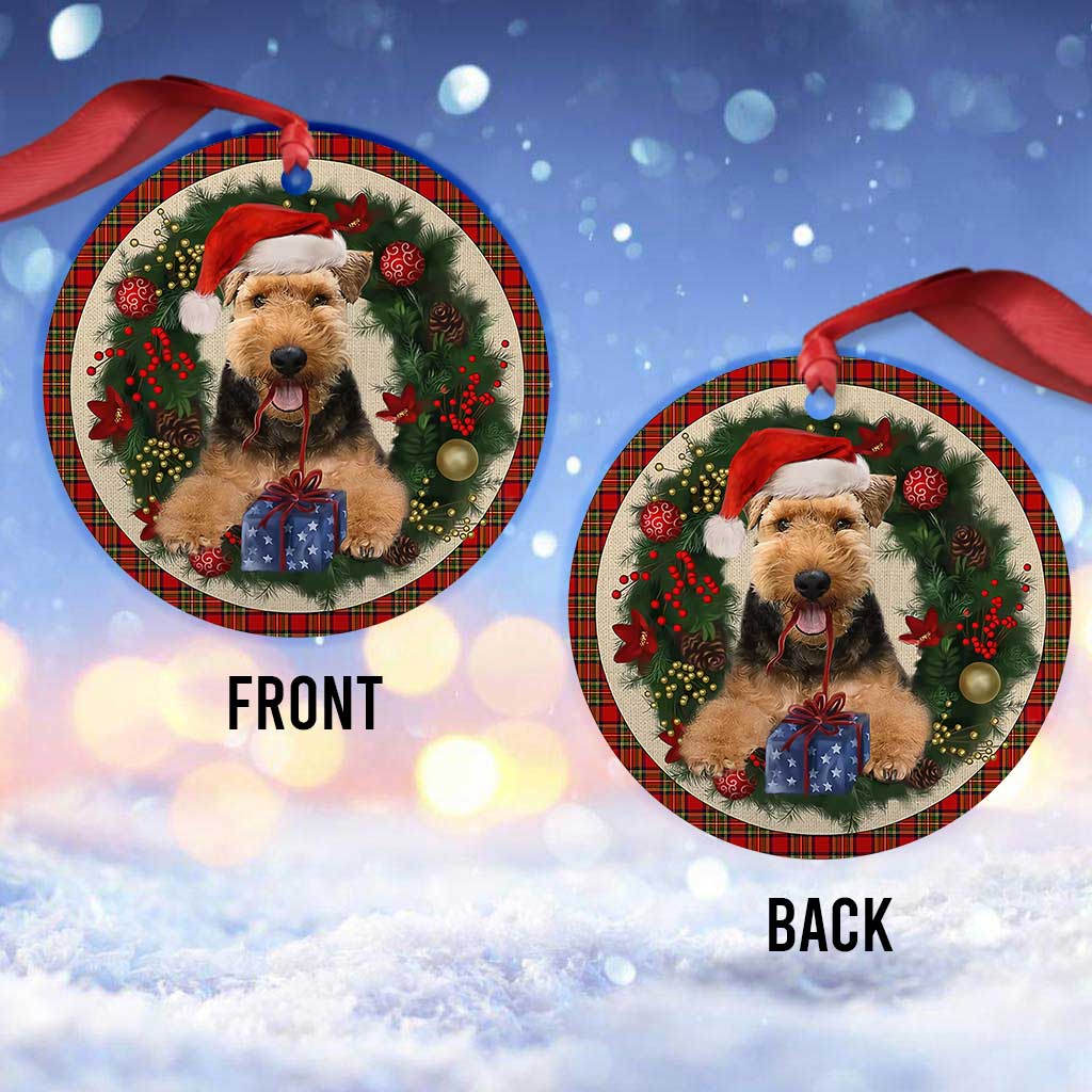 Welsh Terrier Red Christmas Wreath - Dog Ornament (Printed On Both Sides) 1122