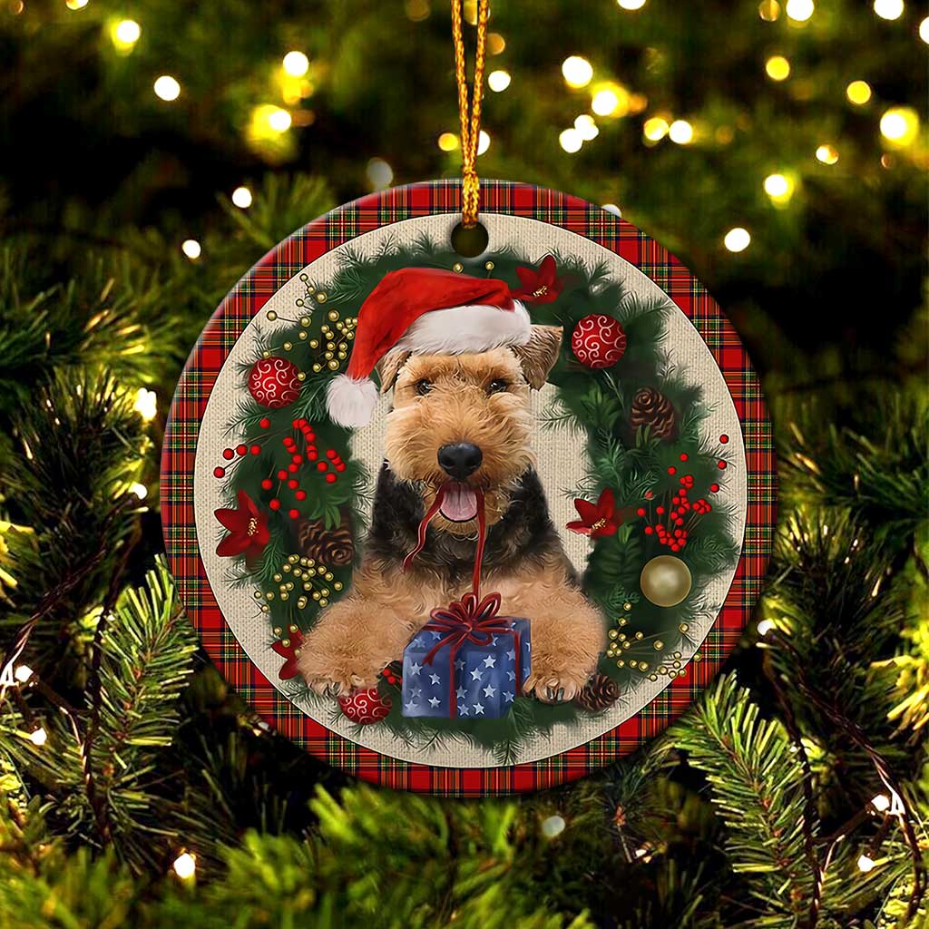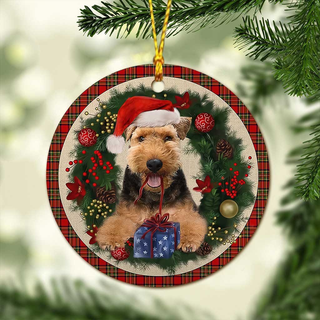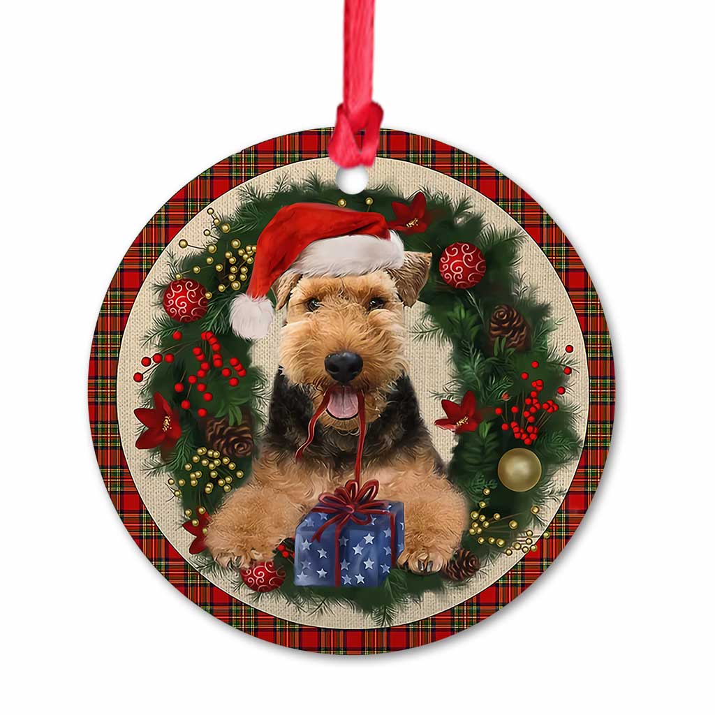 Welsh Terrier Red Christmas Wreath - Dog Ornament (Printed On Both Sides) 1122
