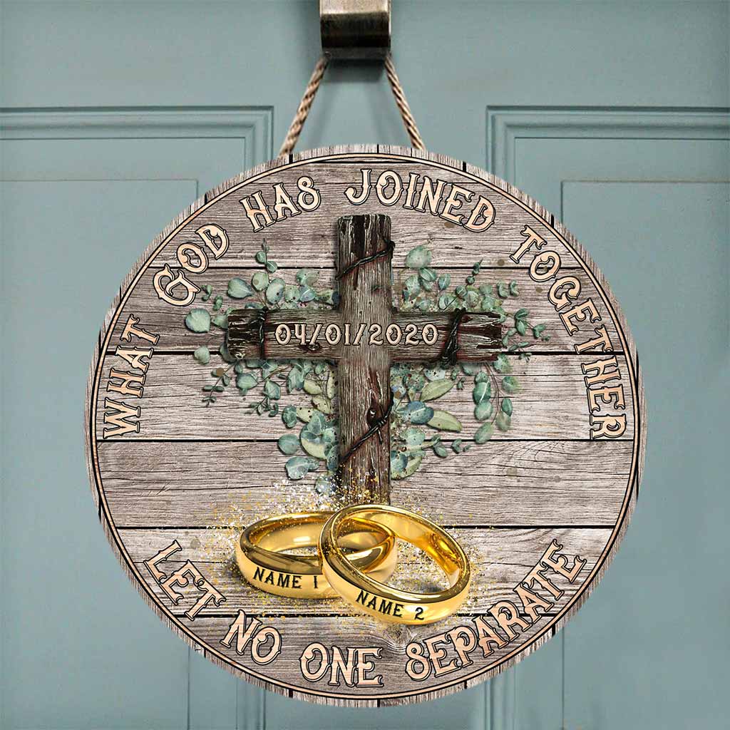 What God Has Joined Together - Jesus Christian Personalized Round Wood Sign