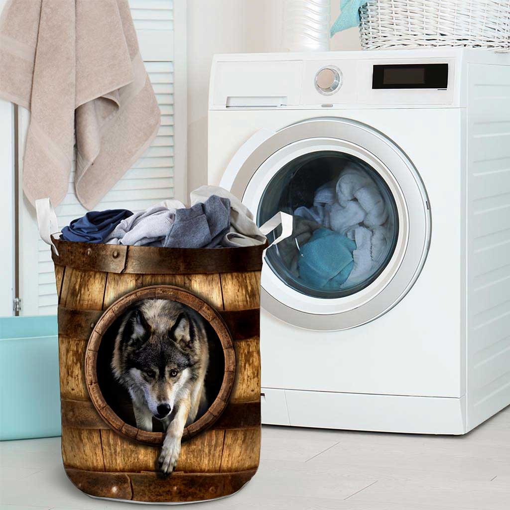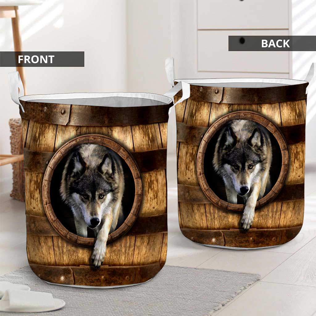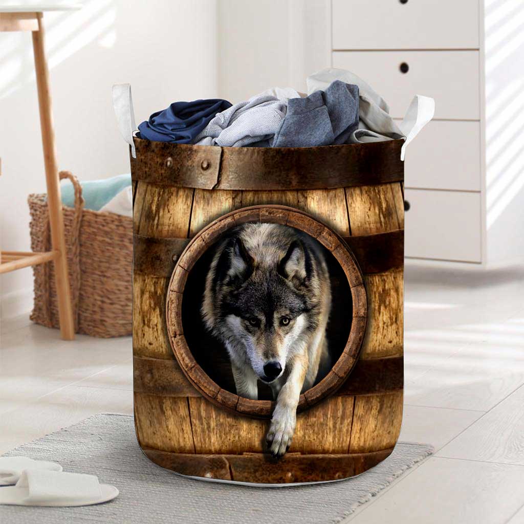 Wolf Faux Wood Basket Wolf Laundry Basket 0622