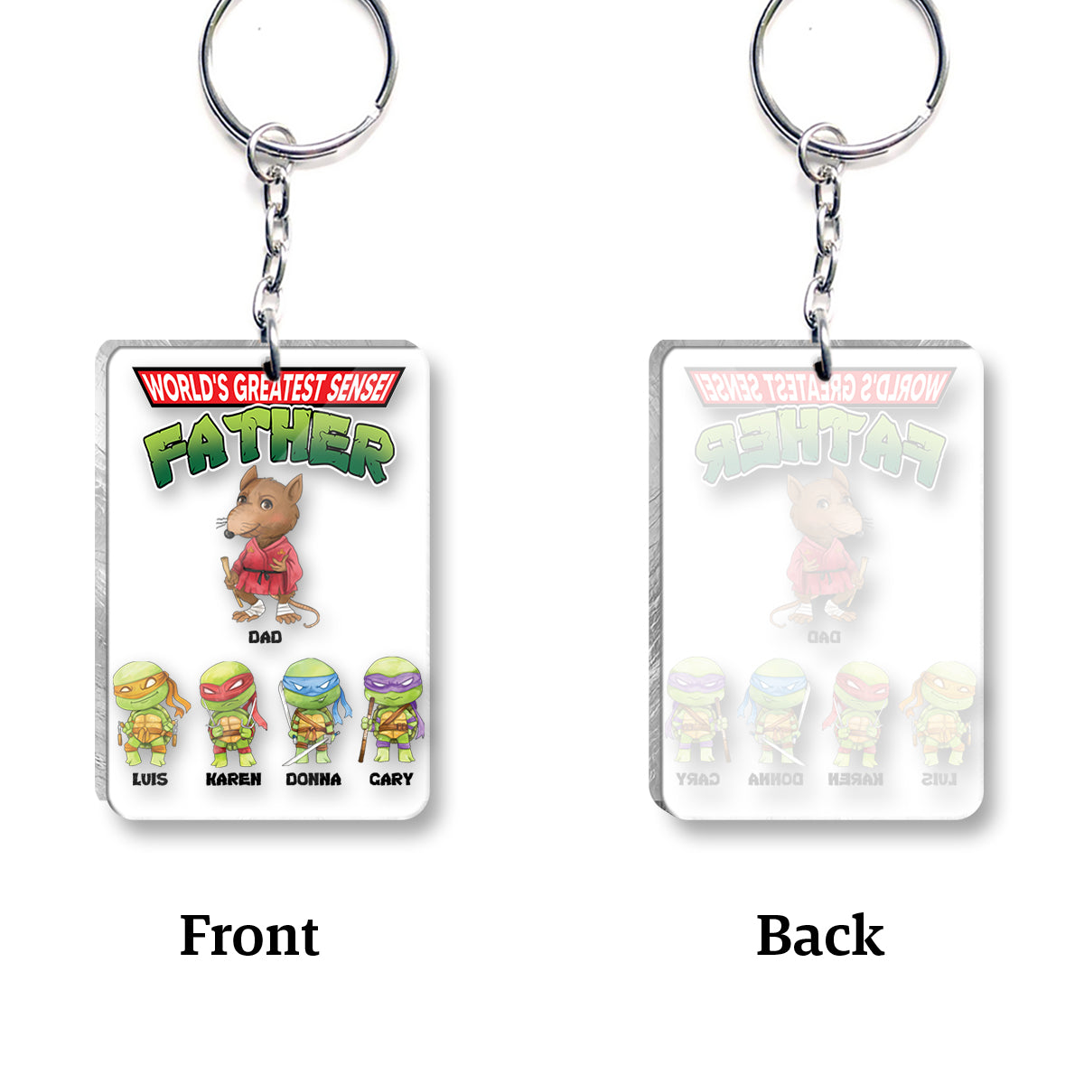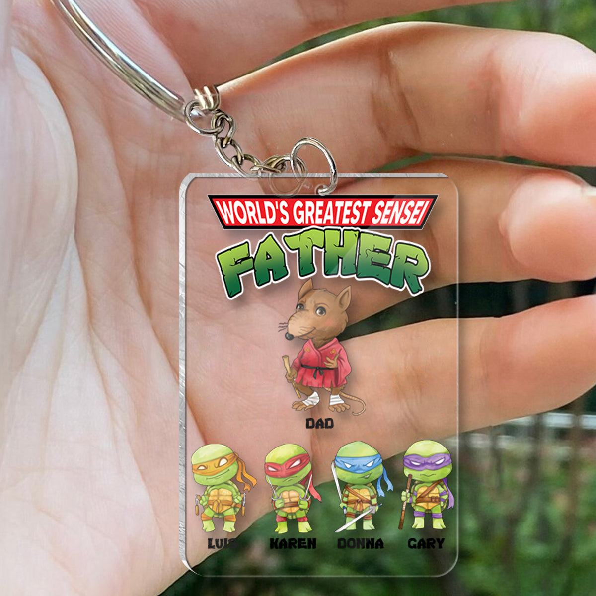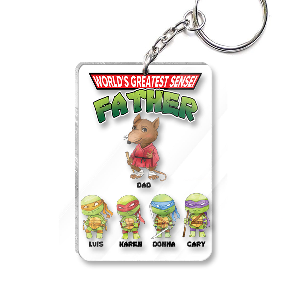 World's Greatest Sensei Father - Personalized Green Turtles Keychain