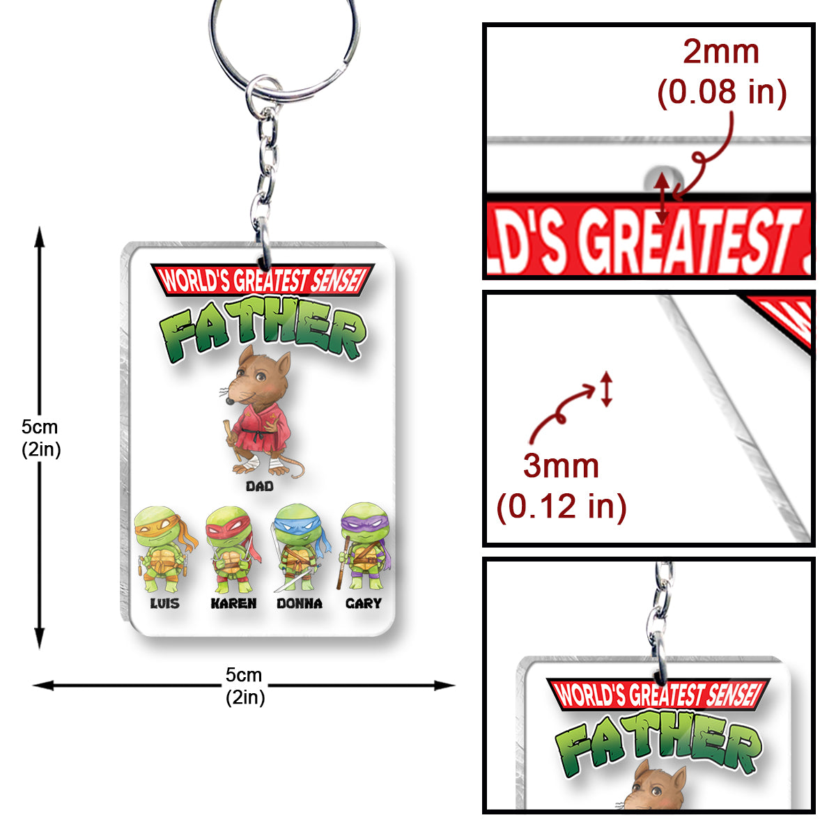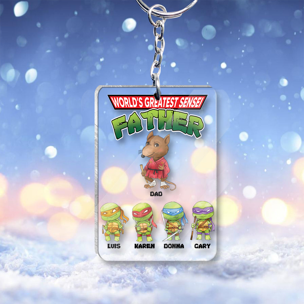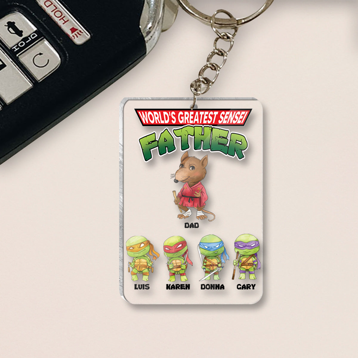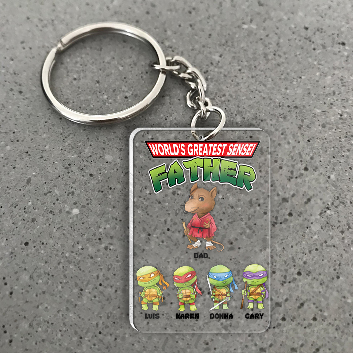 World's Greatest Sensei Father - Personalized Green Turtles Keychain