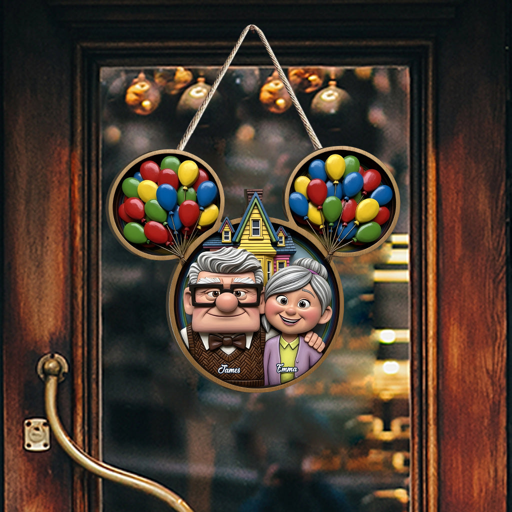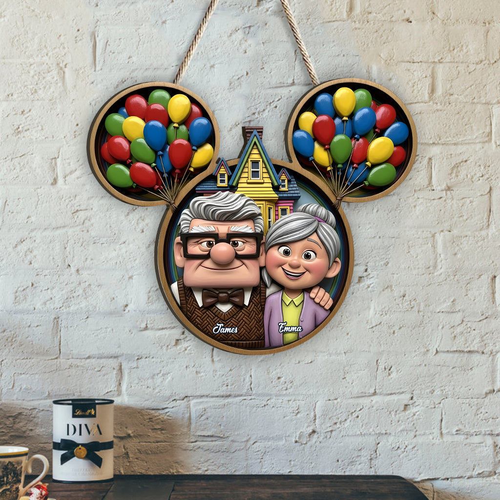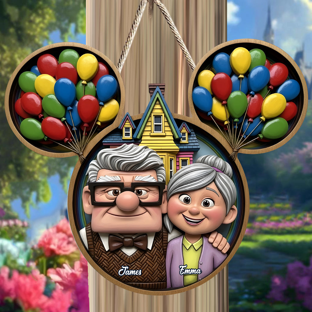 Mouse Ears Couple Heart - Personalized Mouse Wood Sign