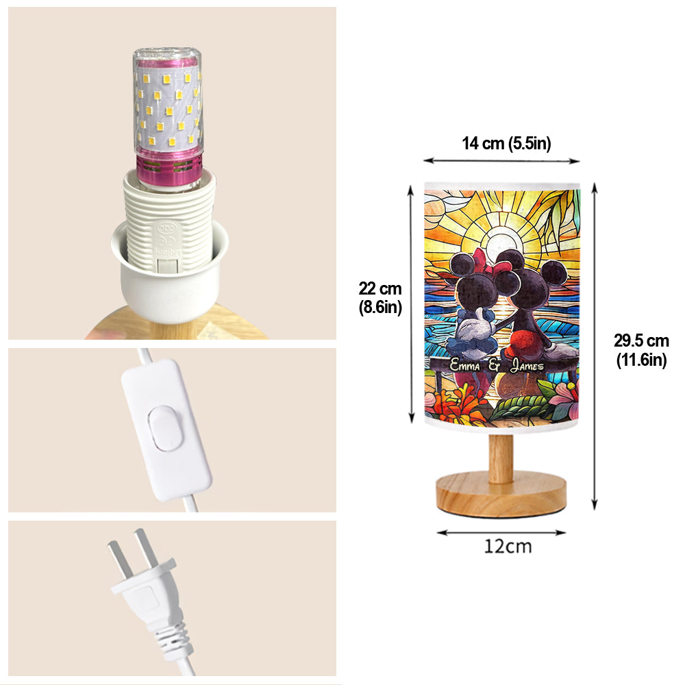 You & Me - Personalized Mouse Table Lamp with Wood Base